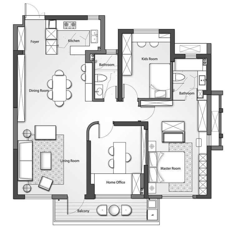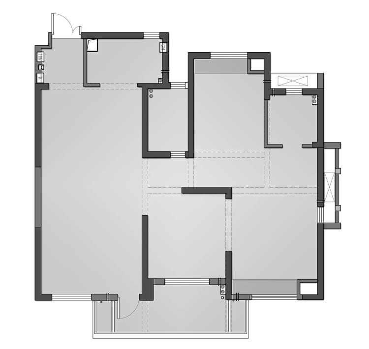 本案为一家四口常住的居住空间,对储物有大量需求。原户型无法划分出独立的储物间,设计师在公共空间内合理利用墙体移位,挪出合理的储物空间。细节之中的合理设计让居住环境更为舒适。