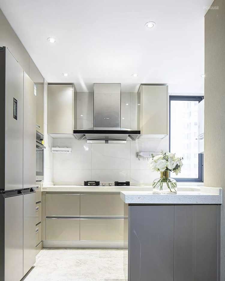 将原有封闭的厨房完全打开增长操作台面、增加餐厨两个空间的互通感、创造家人更多情感连接的机会。