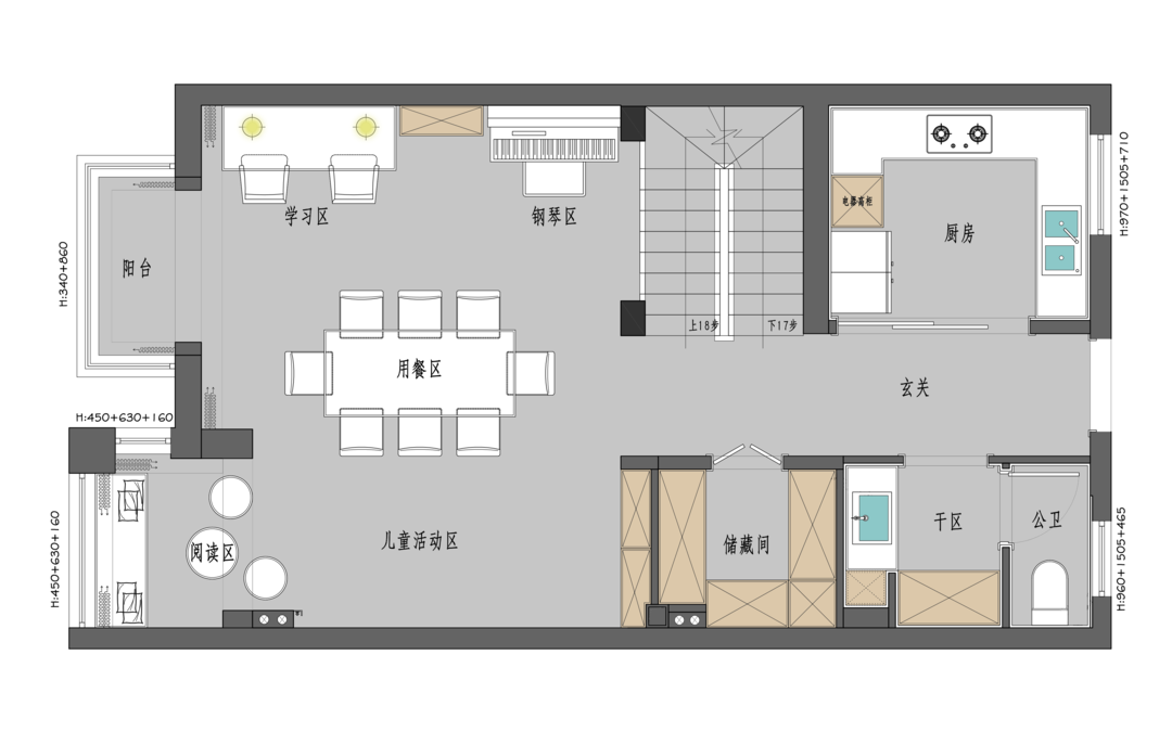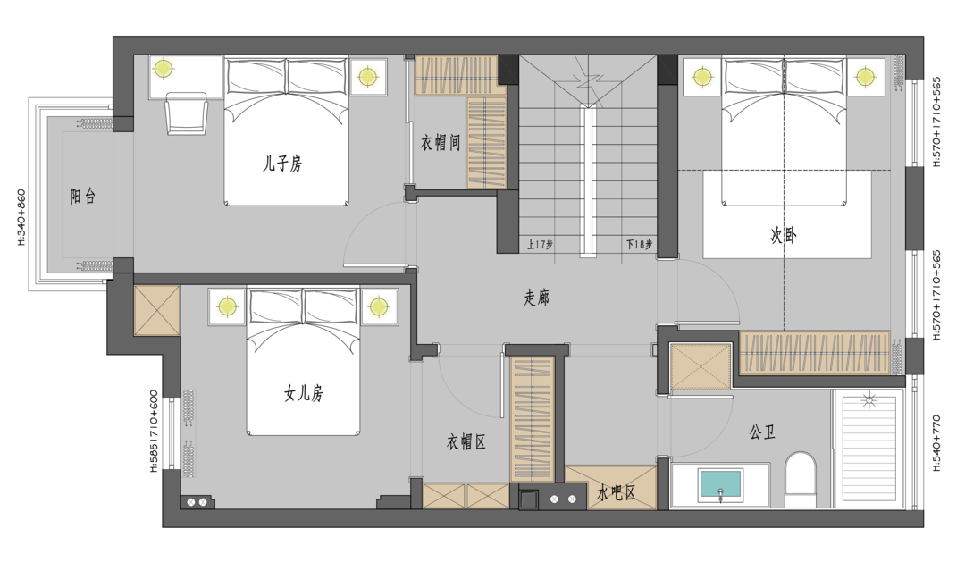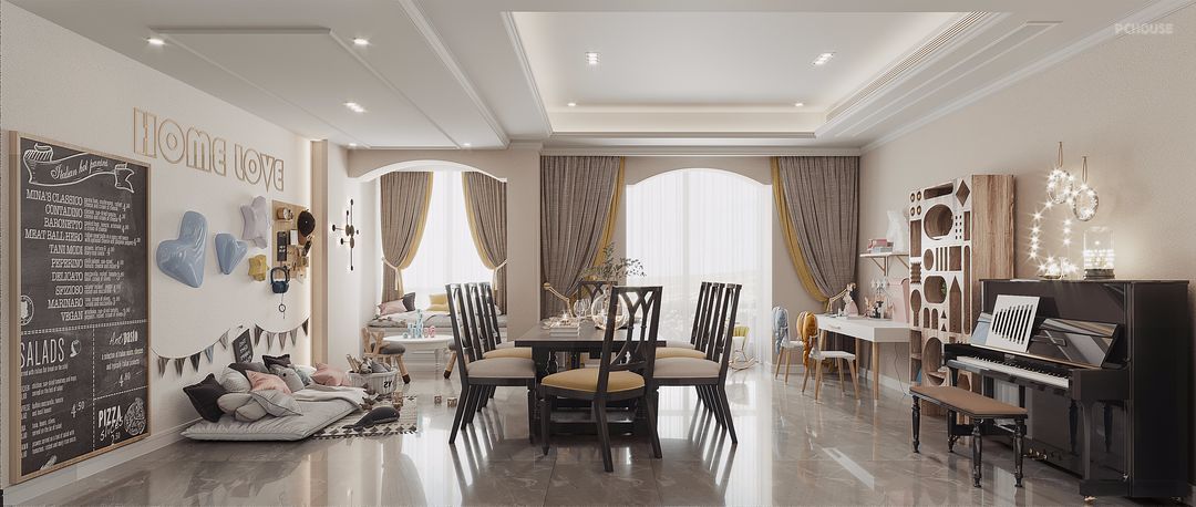 本案设计整体柔和的配色演绎出舒缓温馨的节奏。