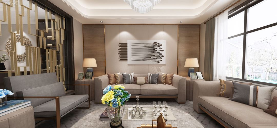 整个空间对景、虚实、藏露、繁简手法串联各功能空间,呈现出一派舒适休闲兼具品质的生活景象。