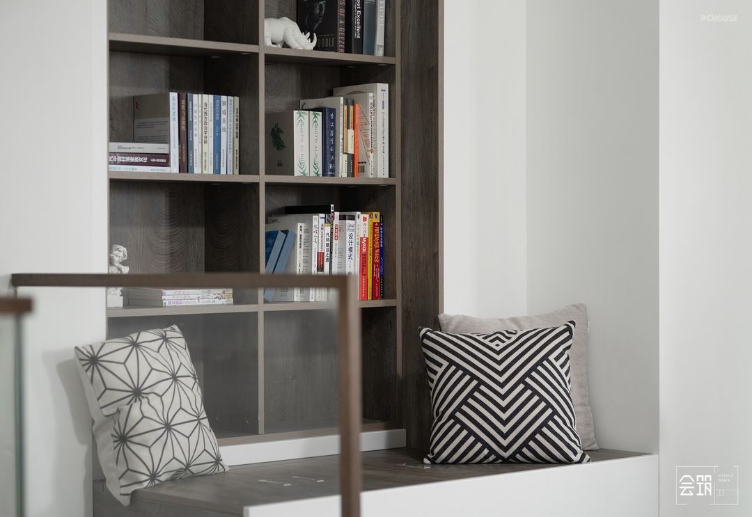 白色的基底配以精巧别致的胡桃木电视柜点缀,极简的电视背景墙与楼梯空间形成一体,色彩上为空间添加了一份沉浸感,造型上又不失现代感。