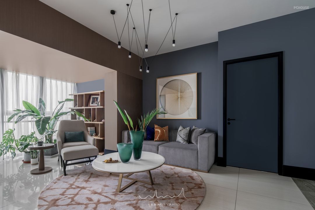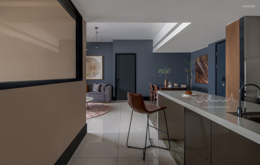 这次的业主小姐姐是一位城市规划师,对自己的家也有过细致的规划,她找到我们的时候我们才得知,因为不满意没有灵魂的精装房硬装风格,她对原有的硬装进行了一些改造。她决定主色调用蓝灰色,蓝色是天空,是水,是空气,是深度和无穷,是自由与生命,蓝色是宇宙最本质的颜色,用温柔的奶茶色加以配合,整个空间散发着静谧又温暖的味道