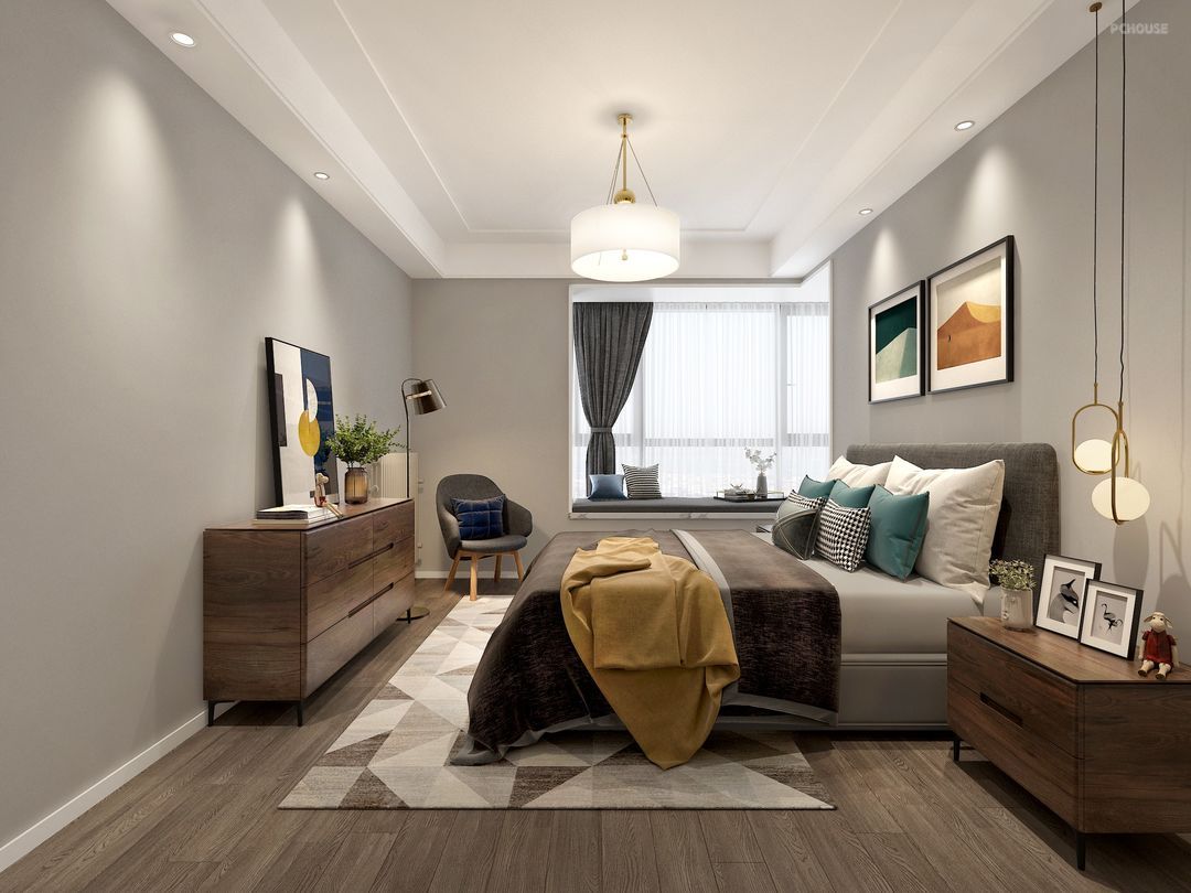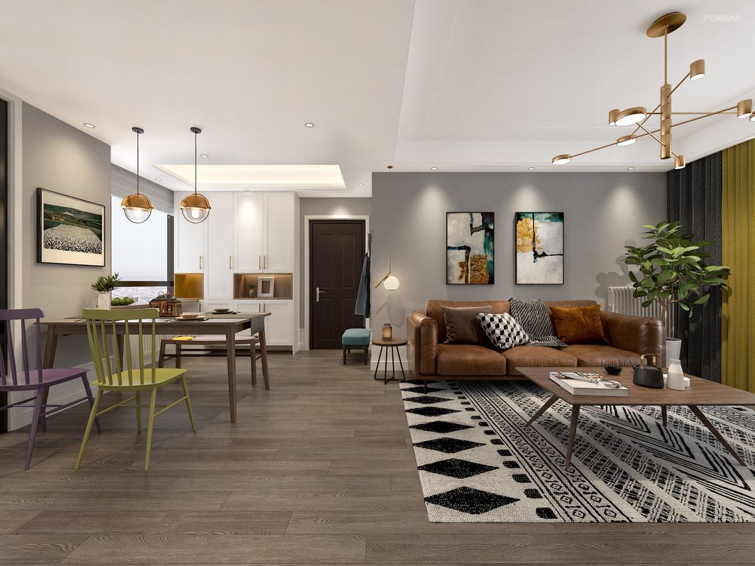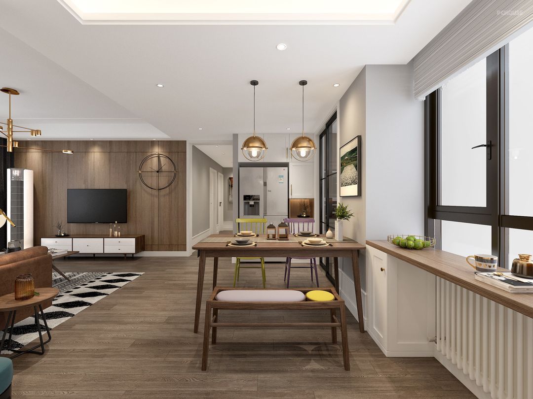 用了大面积的强化木地板铺设,平衡了整体的空间色彩配比,这样使得后期软装操作空间更大。