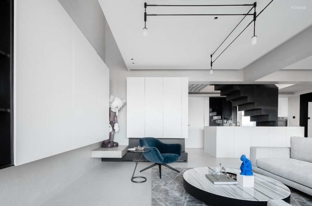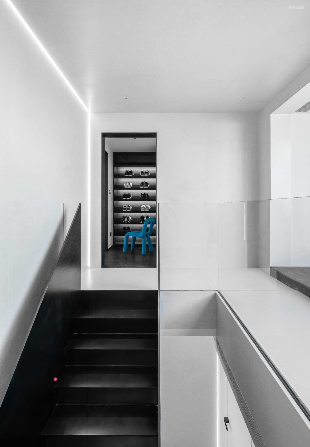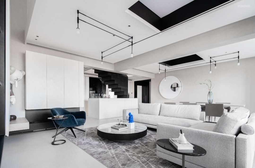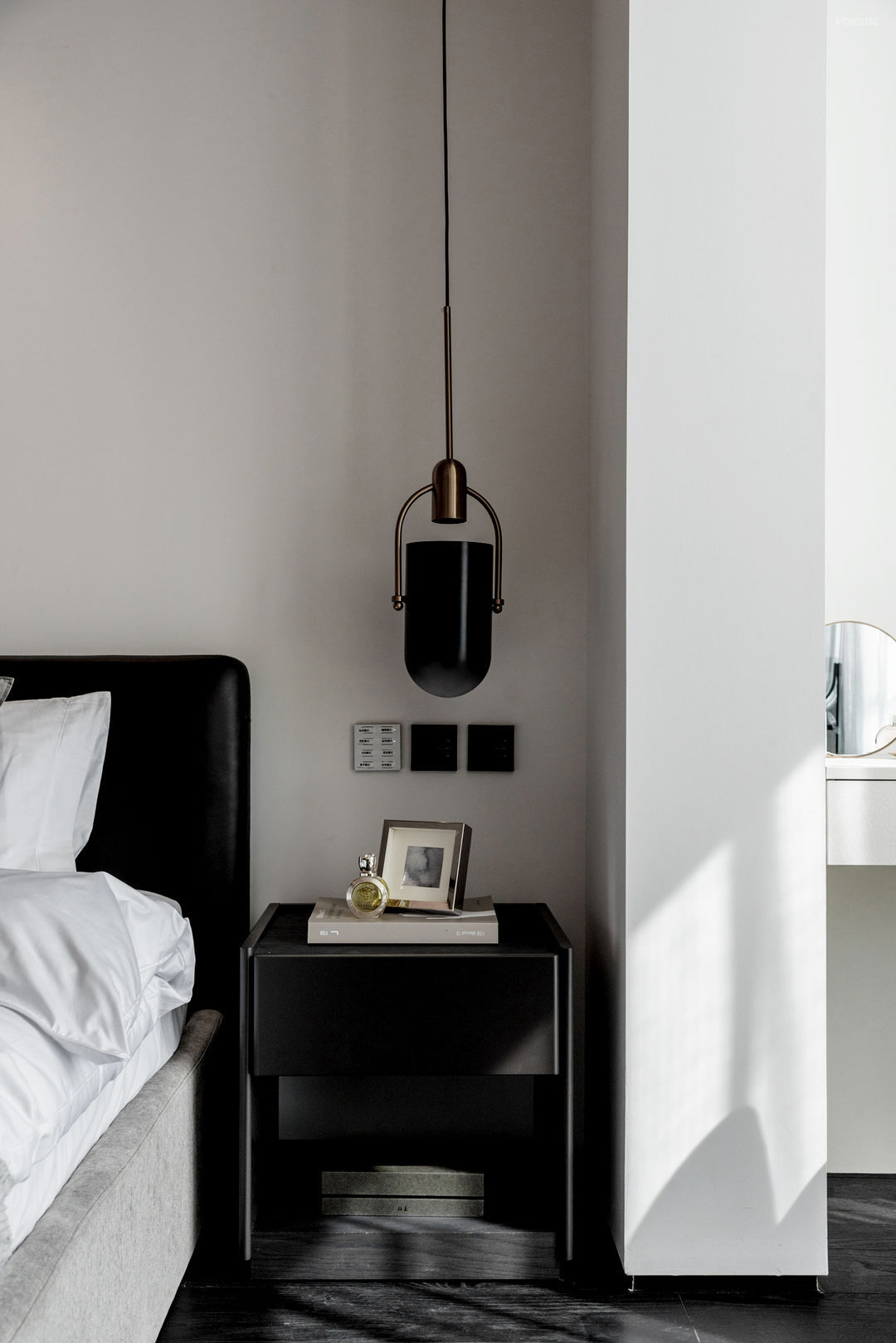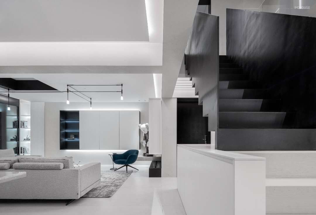 客厅的基调是符合现代城市人品位的黑白调。当被问到这个项目中楼梯是否是亮点时,设计师说:“亮点就是没有亮点!”—— 一个空间中当然会有吸睛的亮点,但他希望空间的每一处元素都能恰到好处的融入到业主的日常生活中而不显得过分突兀。
