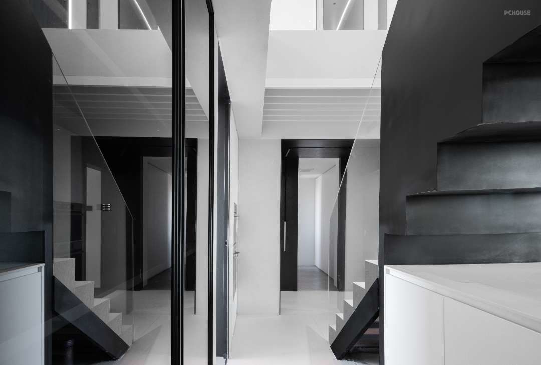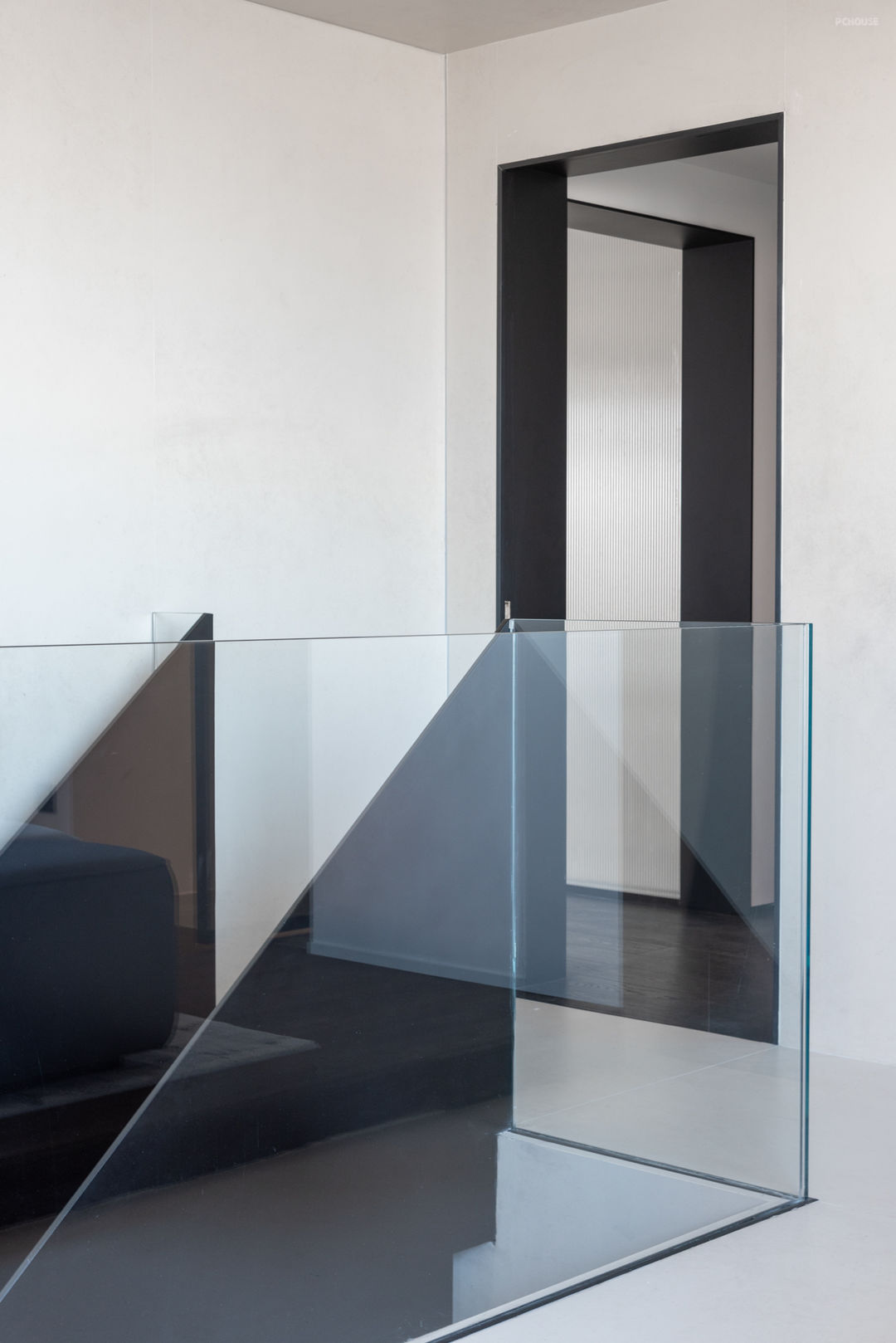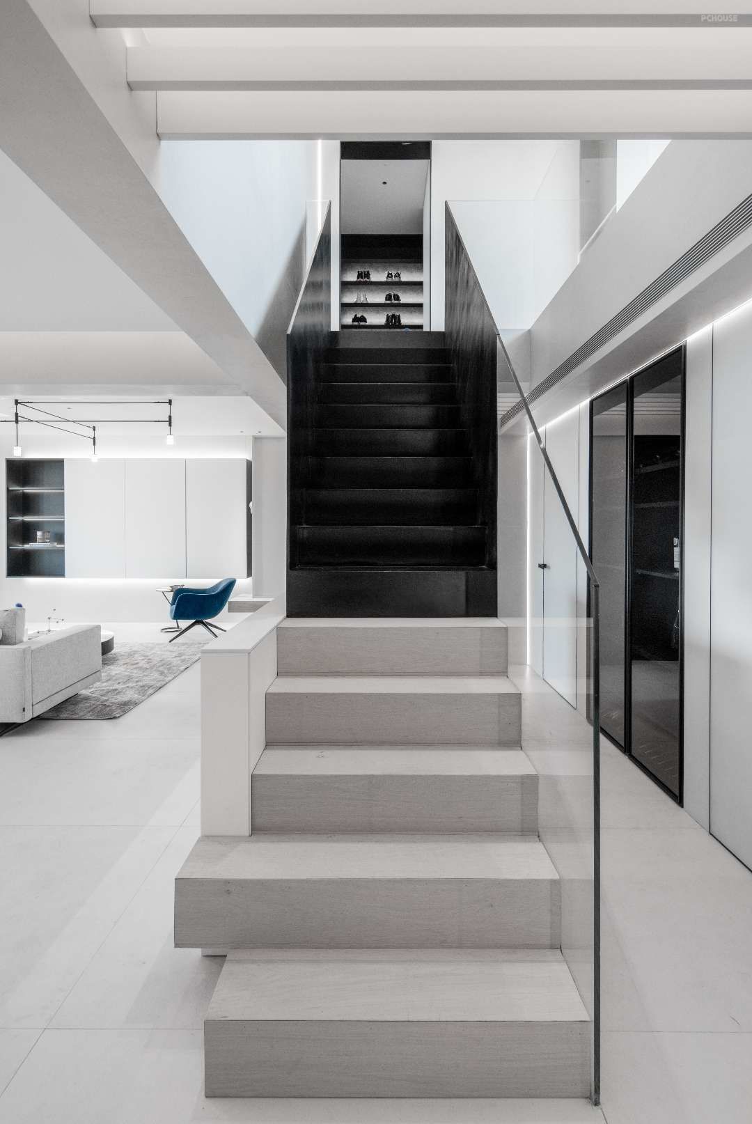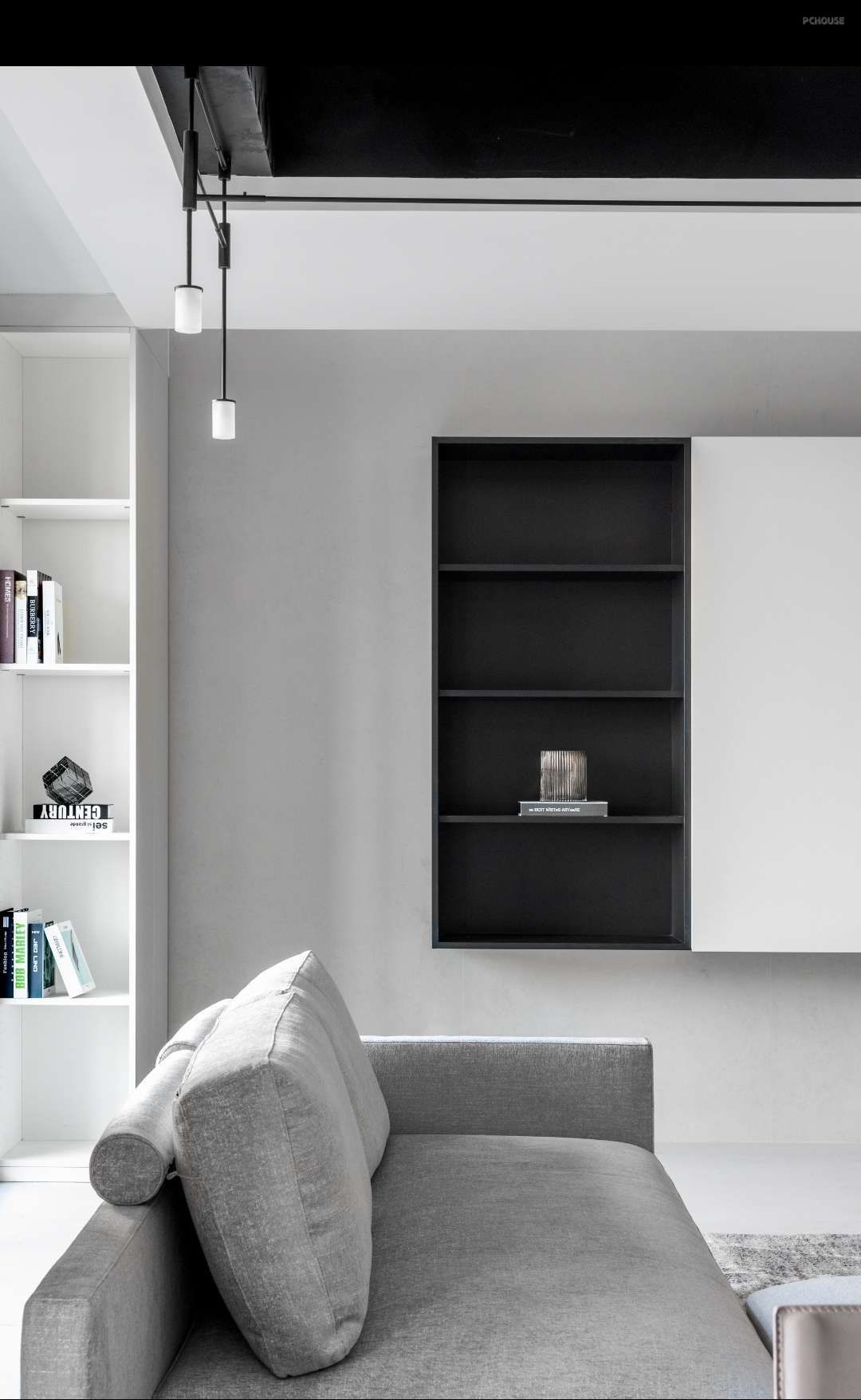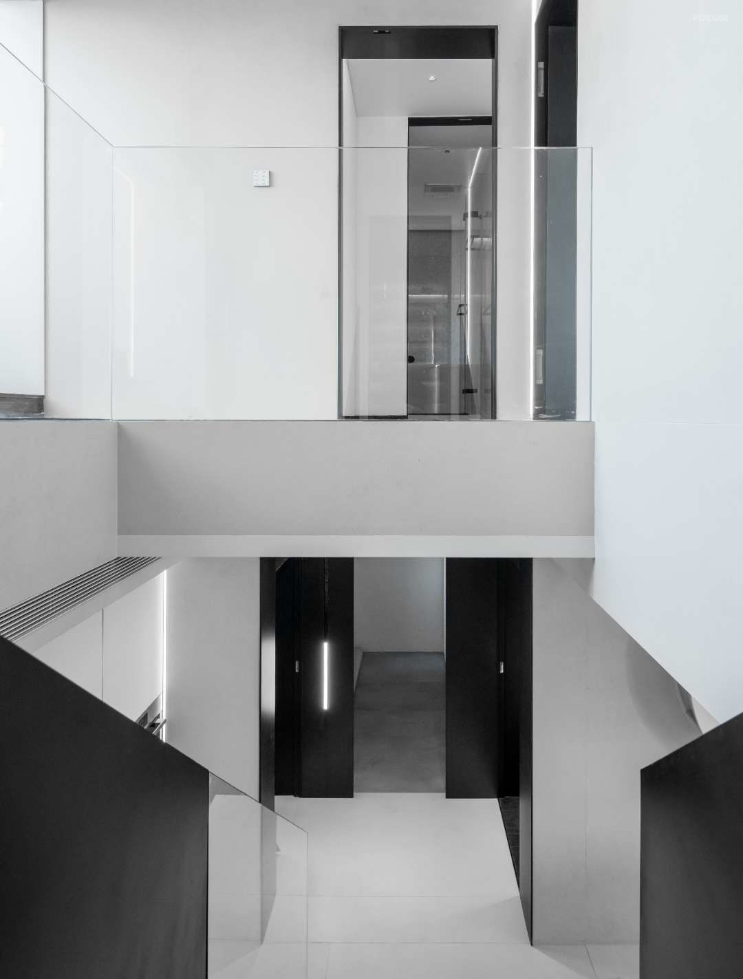 客厅的基调是符合现代城市人品位的黑白调。当被问到这个项目中楼梯是否是亮点时,设计师说:“亮点就是没有亮点!”—— 一个空间中当然会有吸睛的亮点,但他希望空间的每一处元素都能恰到好处的融入到业主的日常生活中而不显得过分突兀。