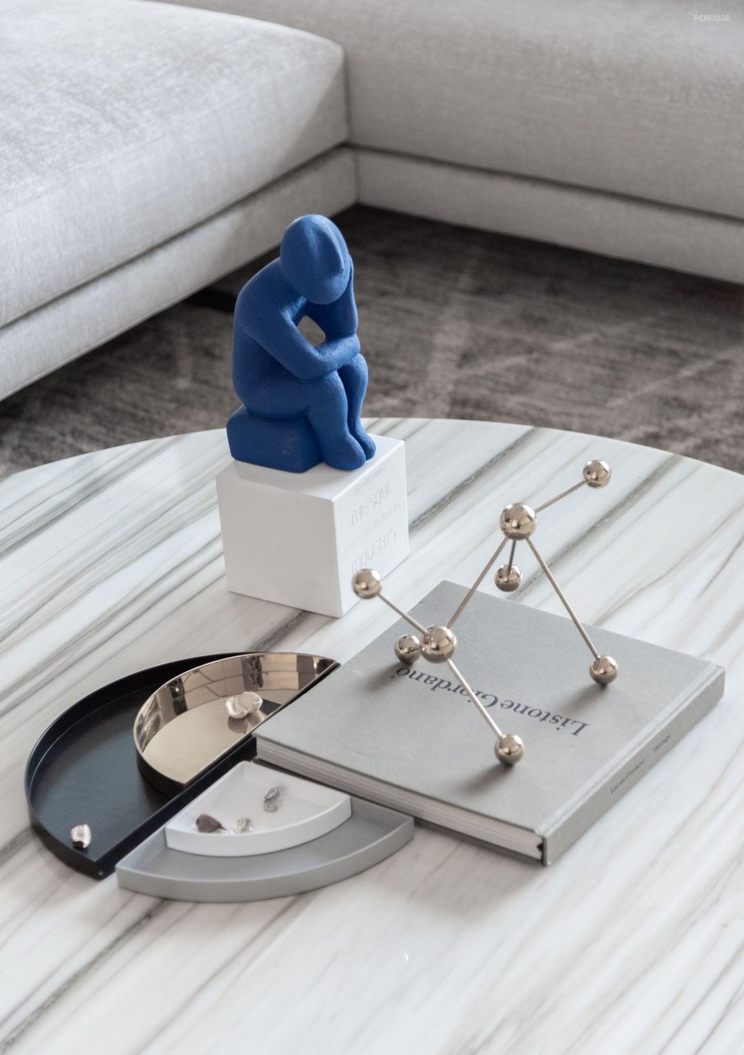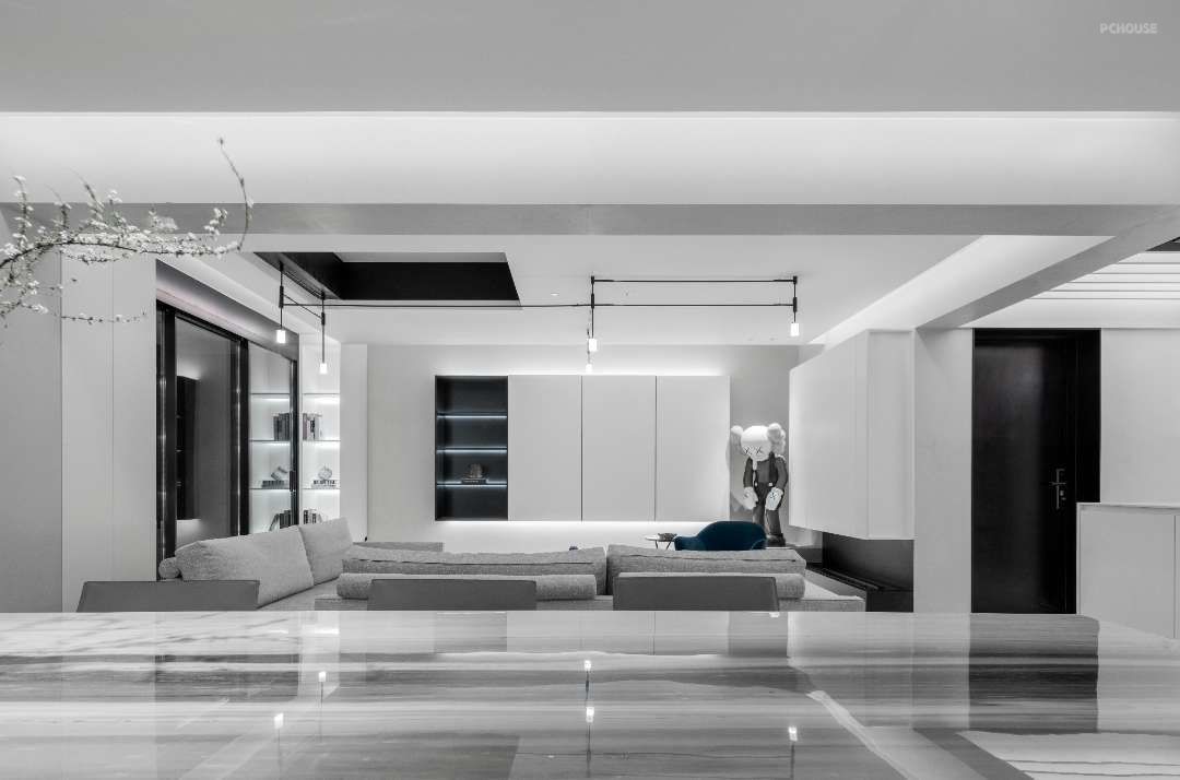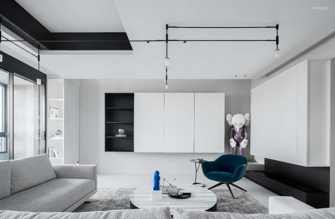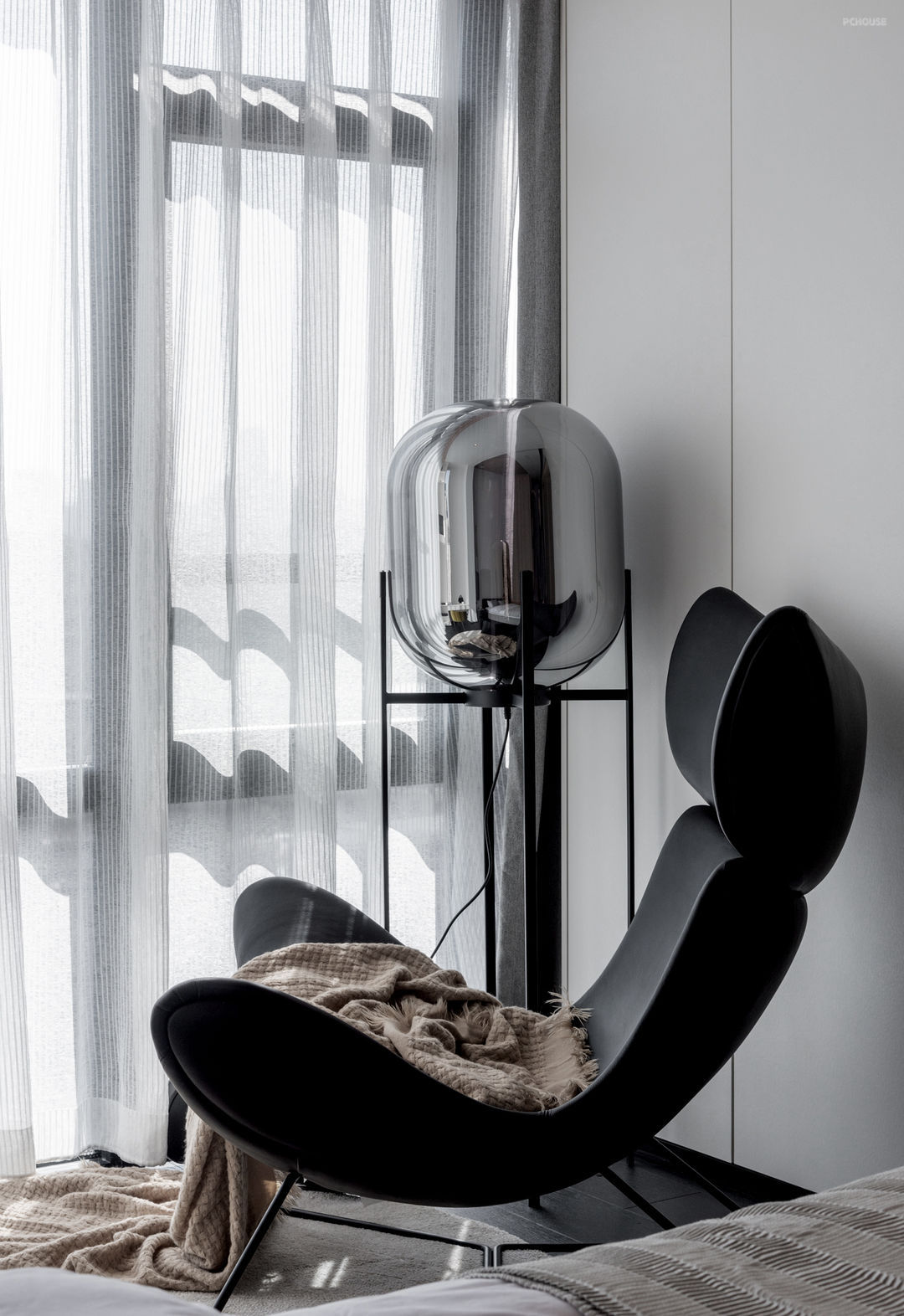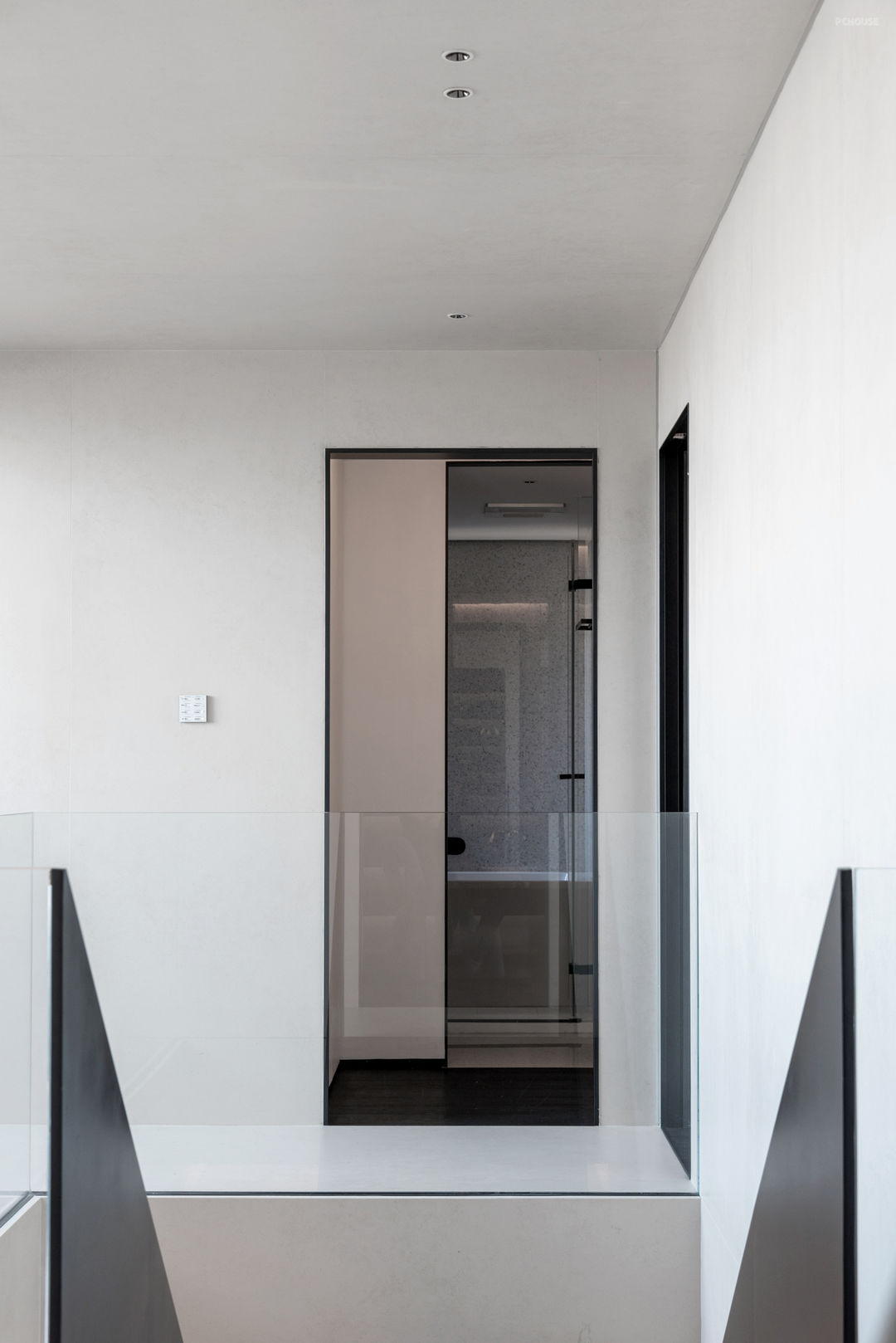 客厅的基调是符合现代城市人品位的黑白调。当被问到这个项目中楼梯是否是亮点时,设计师说:“亮点就是没有亮点!”—— 一个空间中当然会有吸睛的亮点,但他希望空间的每一处元素都能恰到好处的融入到业主的日常生活中而不显得过分突兀。