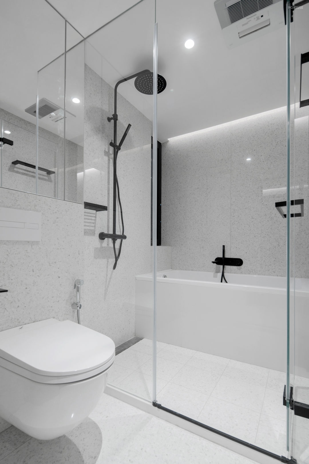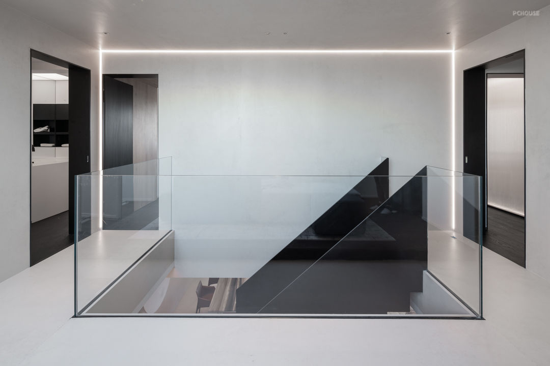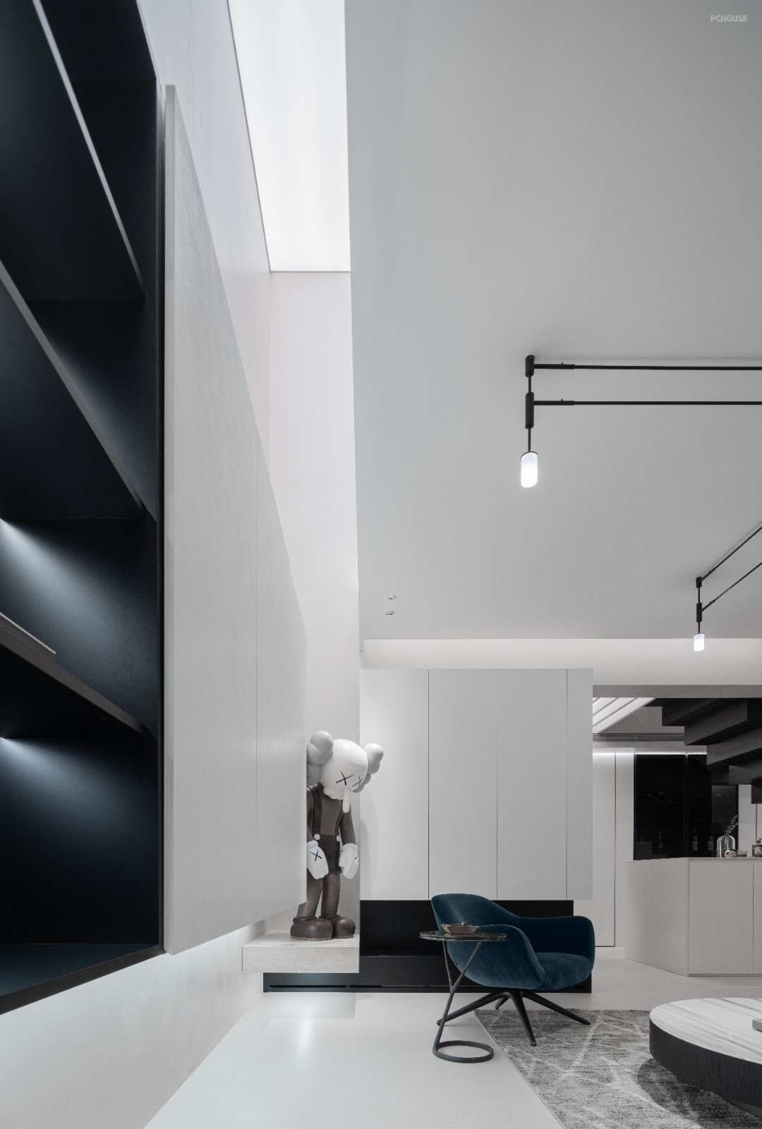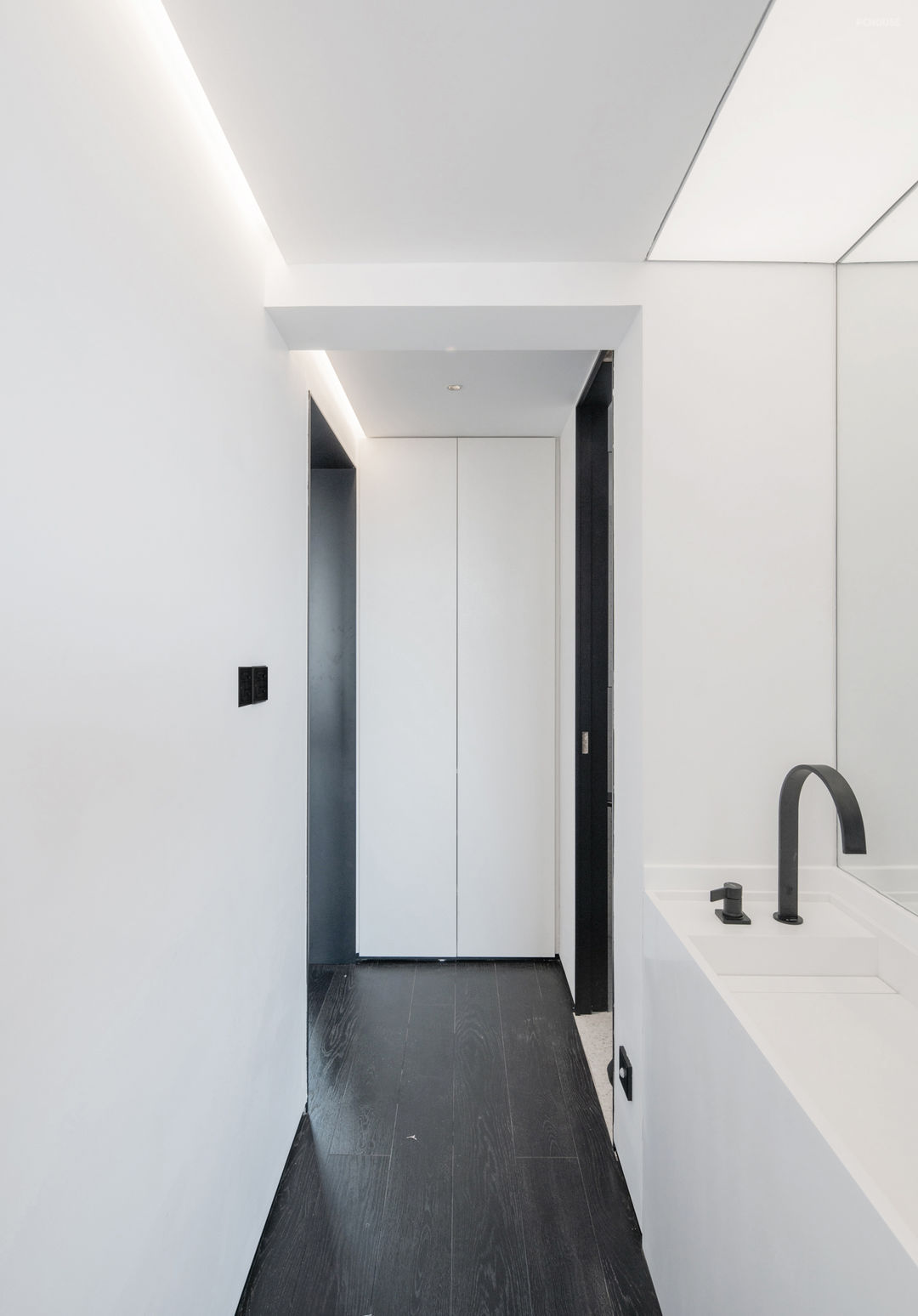 本案中,设计师努力构建出一种基于传统、又为当下人所推崇的生活意境。黑白基调,为整个室内空间铺下一层“静”的背景布;通过建筑手段,令空间彼此贯通并产生对话。同时,设计师还不遗余力地将室外的自然景观引入室内空间,从而营造出彼此交融的情景。