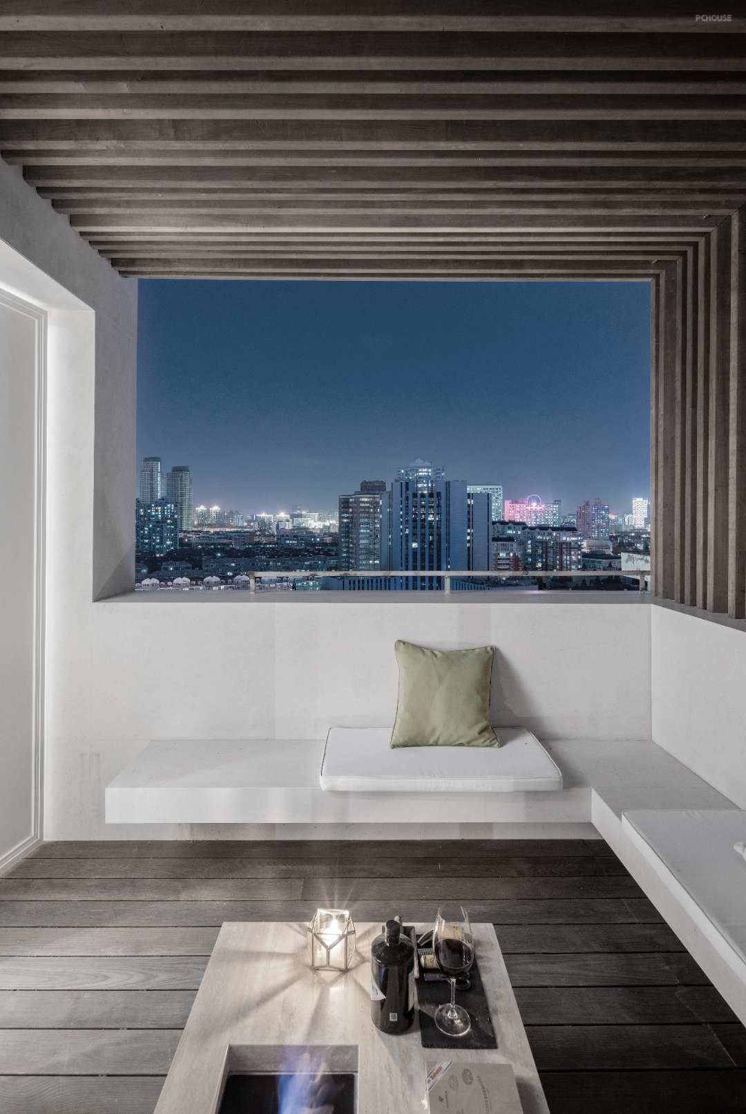 家不仅仅是一个人的港湾,也是一个人群的乐园。它应舒适、包容,且拥有平衡性——既可以为一个人思考提供静谧的空间,也可以为朋友聚会提供一片随心所欲的自由天地。二楼的休闲阳光房,恰是这样一个柔性的空间。透过玻璃,白天可欣然观赏都市风景,夜晚也可远眺上海夜景。