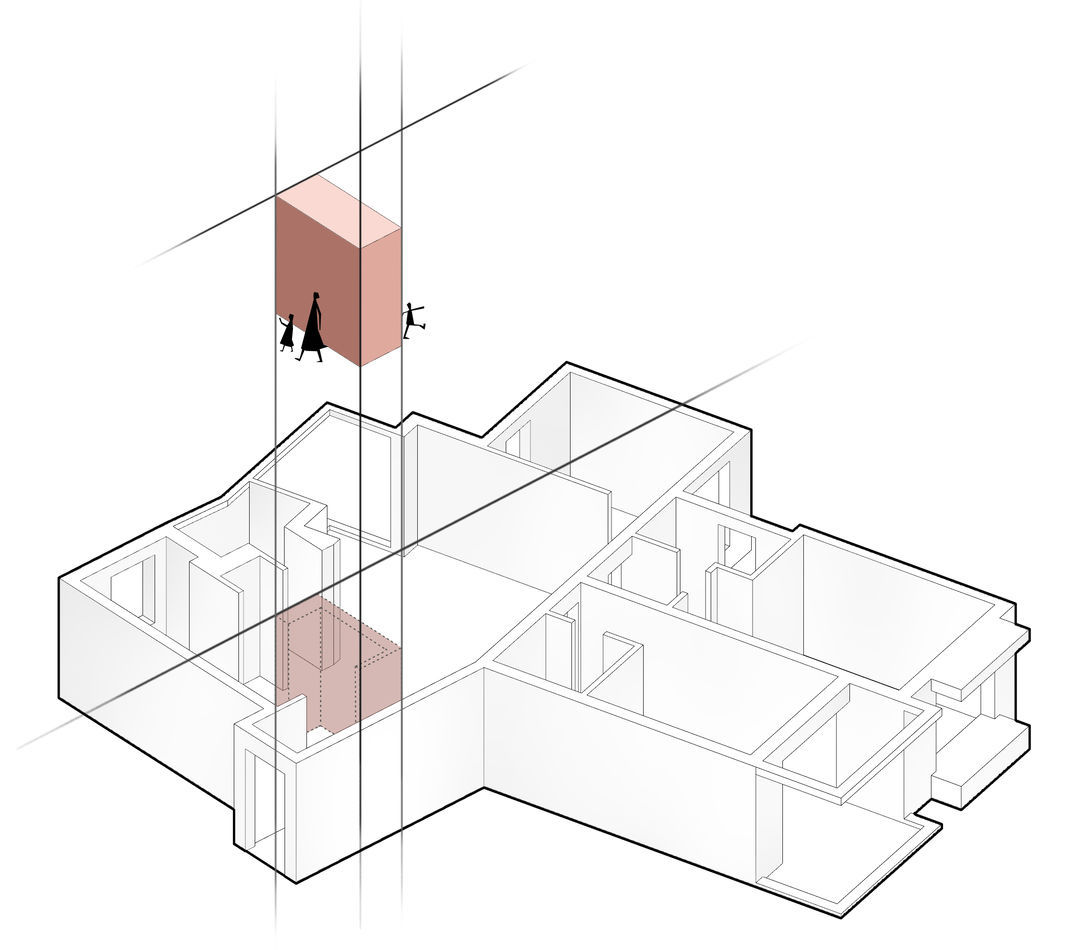 赤茶色盒体的置入为空间的视角带来了多样性,隔而不断,让空间的可能性在业主的居住过程中不断生长。
