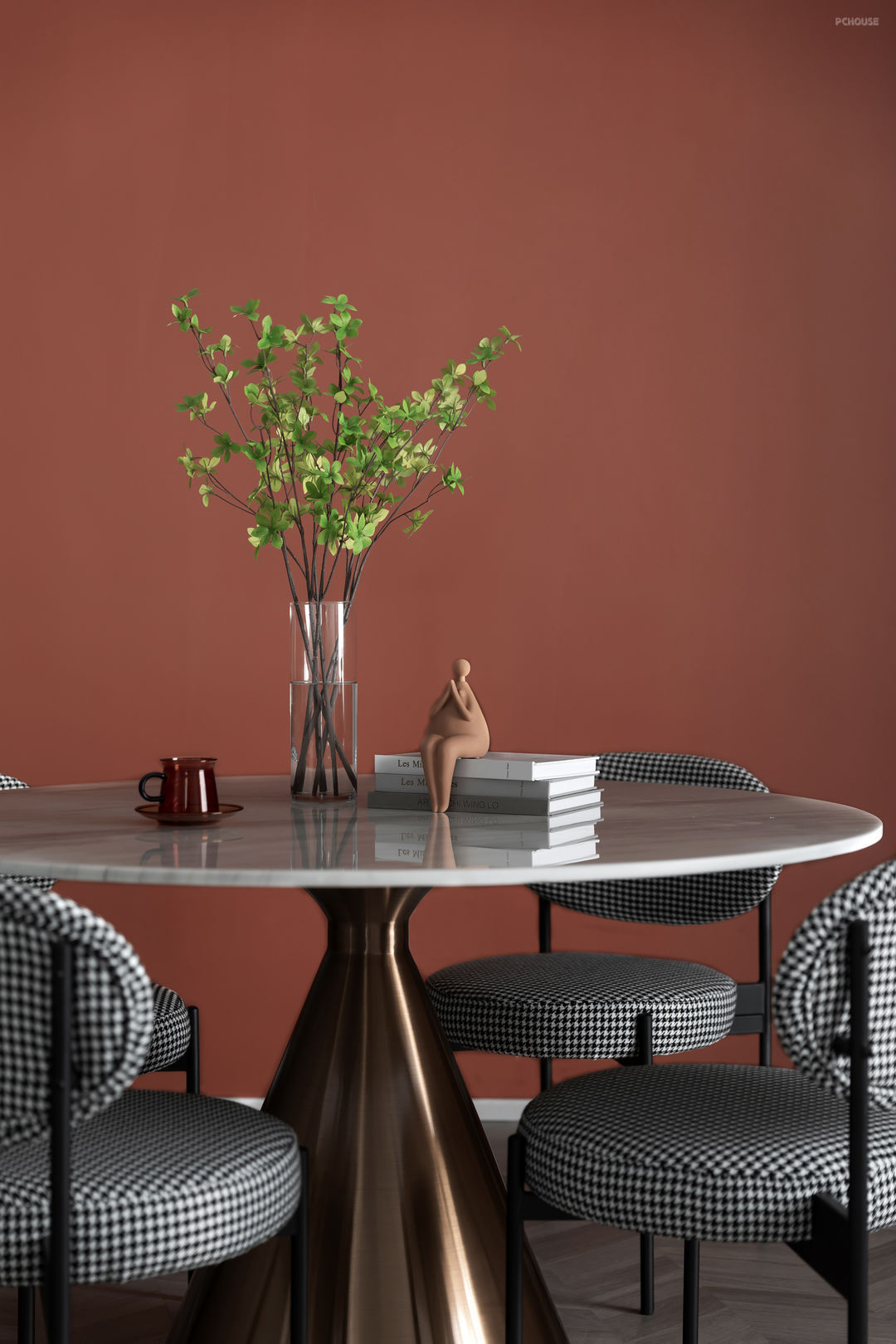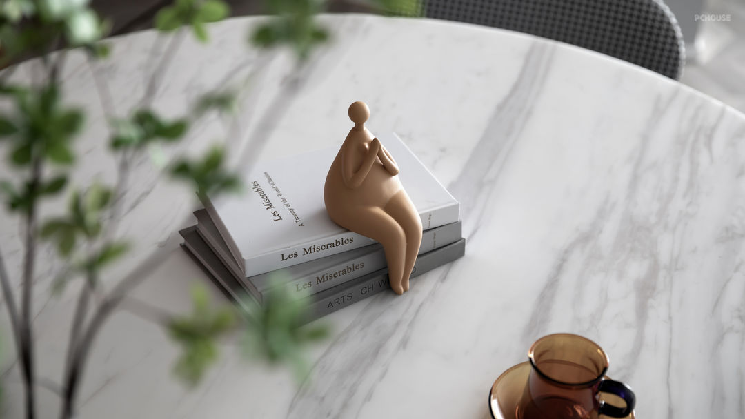 精致的泥塑软装会装点出质朴的空间气质,同时配上一些彩色的玻璃杯可以呼应赤茶色的空间主色。