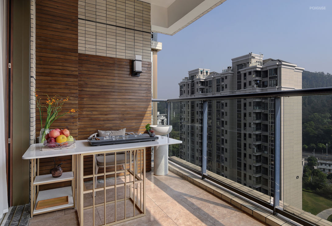 南向阳台是整个房子景观最好的位置,室外就是东莞旗峰山城市公园,闹中取静,品茗会客,享受喧嚣城市中宁静的家,享受着春夏秋冬的各色美景
