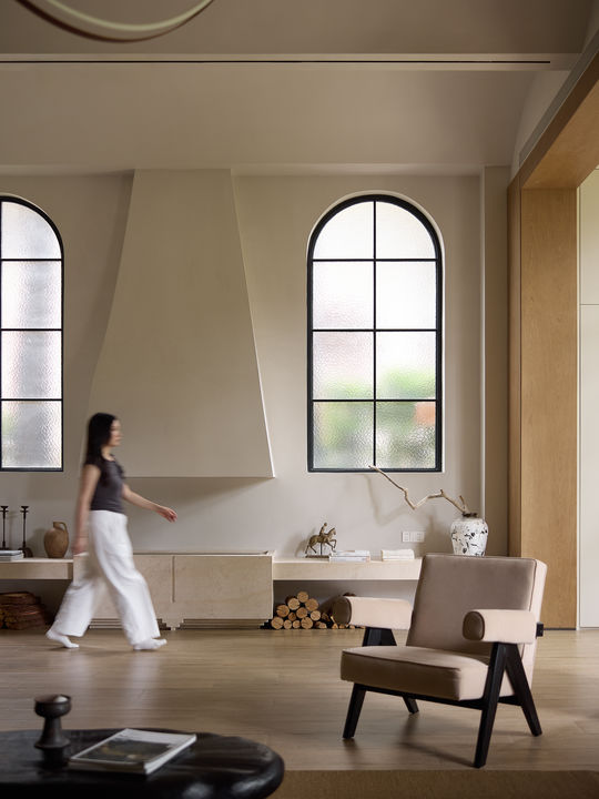 餐椅的调调基本和客厅的两个单沙发一个调性,不同的是在餐椅我们用的是米色的皮,担心有油渍频繁,易于打理,靠背是一条金属弧下来,看着线条感强,其实坐起来丝毫不会感觉到硬或者不舒服,为这一款椅子我们反复跑了四次家私厂打板,反复调整舒服度,所以,坐过的人都为我们的执着点赞,哈,好的作品当然离不开用心去推敲。