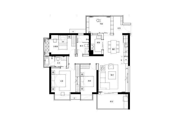 两代人居住,偶尔父母或朋友会来居住。男主人需要书房,女主人需要储藏空间。有个四岁的小男孩,需要活动空间,暂不考虑二胎。
