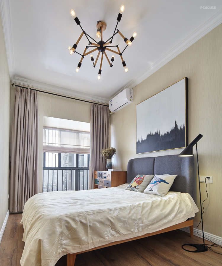 浅色棉麻搭配深色地板,简简单单,属于自己的一方天地不需太多繁杂。
