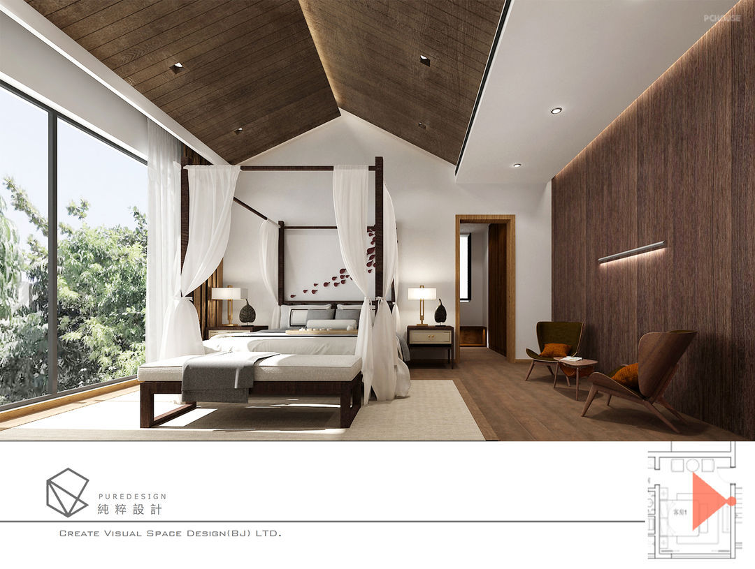 二层分成两个区域,公空空间设计成起居室和水吧区,同时兼顾阅读区的功能,从二层起居室可以通往楼顶天台。三个卧室套间设计有睡眠去,休闲区,衣帽间和卫生间,让在这里休息的人实用起来非常方便。其中两个卧室的功能更加强大,在卧室都增加了泡池和露台。