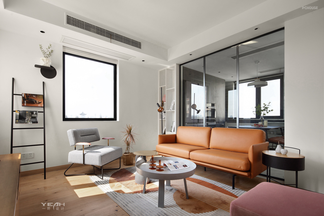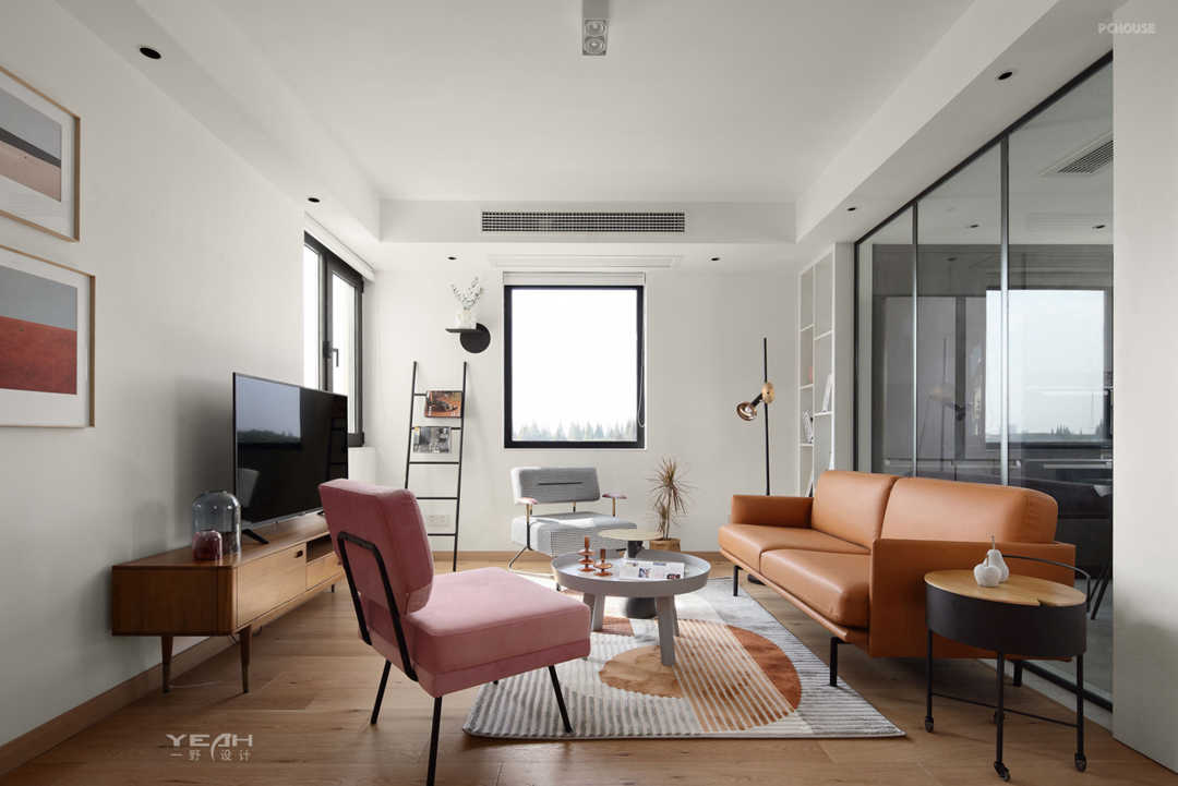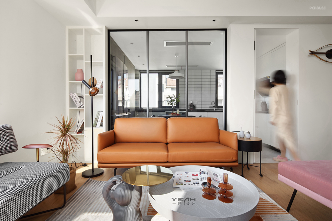 大面积的白色,加入欢快活泼的橙色继续点缀暖色的粉,给人感觉温暖而幸福,又可以凸显出软装整体在空间的分量,与硬装相互联系,不可分割。