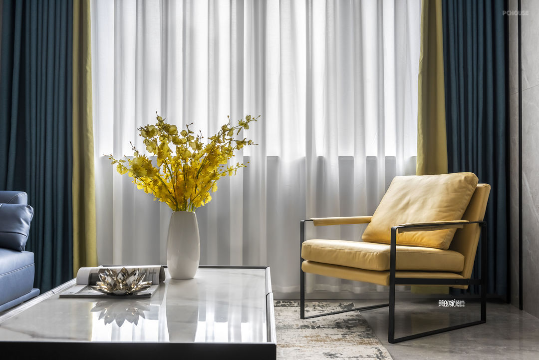 设计在高级灰的空间中加入了明亮的黄,雅痞的蓝。这样的配色打破了传统绅士的循规蹈矩,不再固守传统和身份认同,在张狂不羁和高冷疏离的之间,边界尺度平衡得恰到好处。充满了个性艺术与摩登风范。