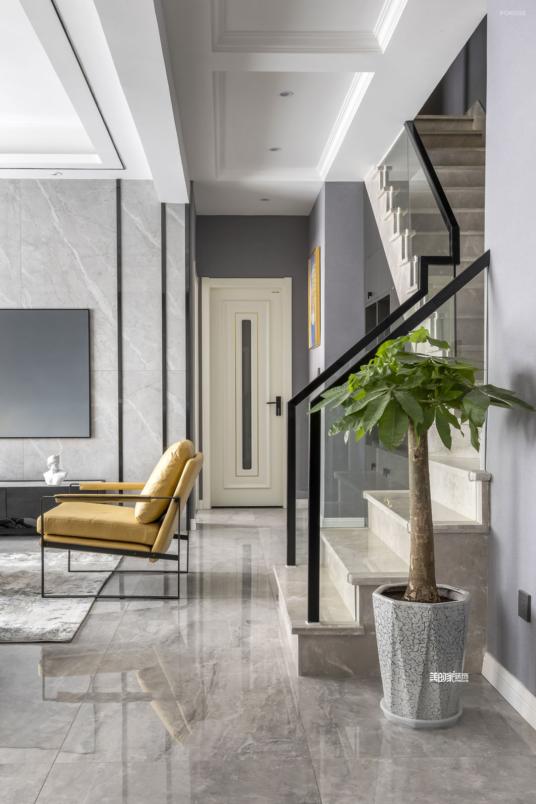 灰白搭构建的空间基底,明亮轻盈。大理石、线条与金属材质的运用,营造出简洁、干练的空间属性。用简单取代繁复,展现出与生俱来的高级气质。