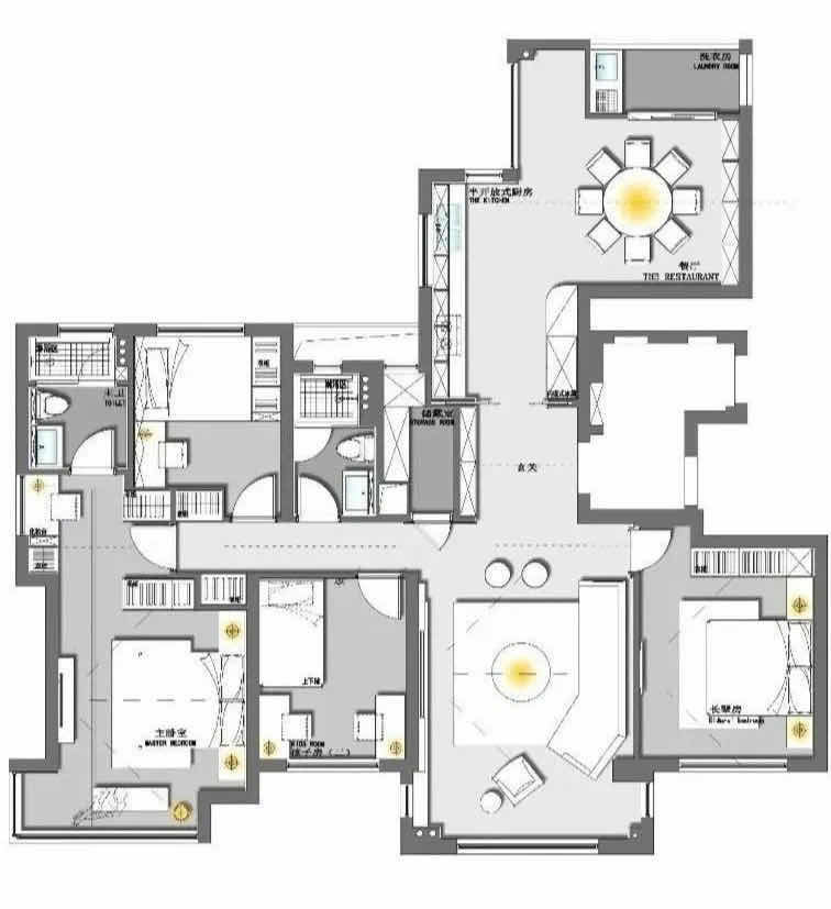 I.首先将入户北面的空间结构完全打开,厨房与餐厅功能的结合同时令空间使用相对独立,且具备更强大的收纳功能。空间适度暧昧的同时也保持着一定的通透视线。