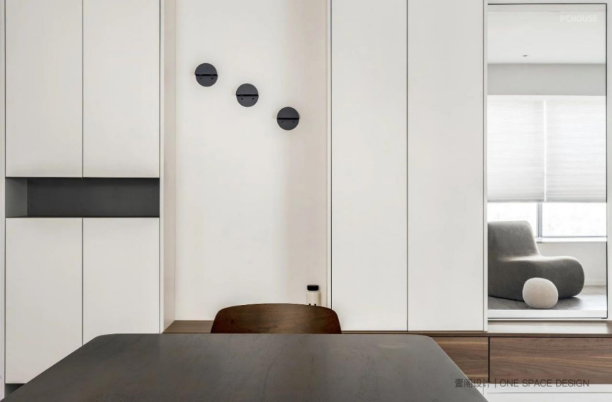 There is no extra decoration, low saturation color and extremely simplified shape, while ensuring sufficient storage space, it still maintains a simple visual sense, making the entire living room full of simple, soft and quiet feeling.
