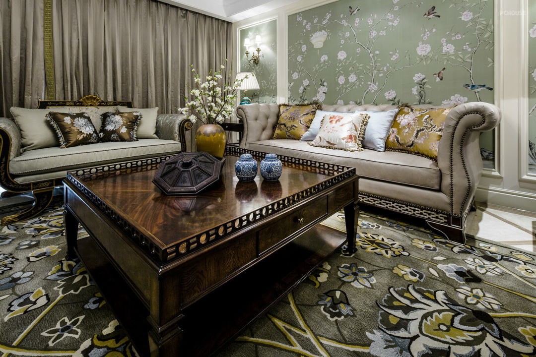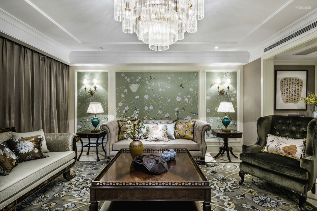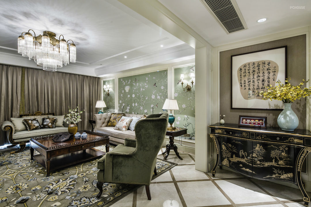 本案位于上海大黄浦区中山南一路500弄融创滨江壹号院,交通便利、配套齐全,地处黄浦国际版块核心区位,简装修交付标准,但业主对原有的交付标准不太满意,空间利用不够充分,因此设计师根据客户的需求,对原来的空间重新进行平面规划,墙体改造设计、整体软装设计,使空间焕然一新。传统的中式元素邂逅欧式的浪漫,也许是细腻的中式装饰相遇美式的摩登,将东方的情调与西方的雅致在家居中完美融合,跨越时间而来的优雅美韵构筑出一个灵秀而绝美的居住空间。