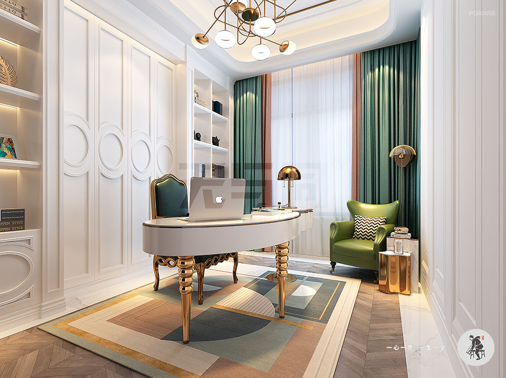 祖母绿象征着仁慈、信心、善良、永恒、幸运和幸福,设计师将祖母绿元素融入别墅三层的设计灵感中,这是一种美好的祝愿,一种高雅的空间格调,更是一种主人家美好气质的象征。