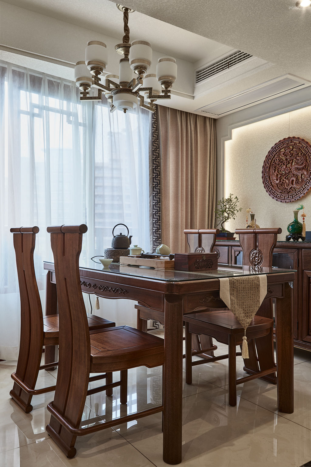 无论是造型简洁的中式家具,沉稳而现代的配色,还是伴随着主人20年的古铜色童男童女摆件,都配得上住在这房子里30岁人生的稳重,40岁人生的历练,50岁人生的大度。