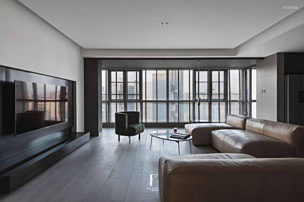 利落平直的线条穿插、勾勒其中,呈现出适可而止的简约克制之美;温和驼色的融入,更是增添了一丝松 弛有度的自然气质,也给空间植入了安静、与平和的种子。