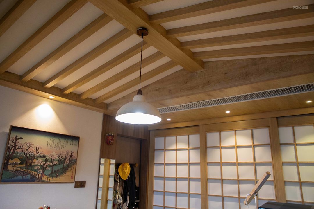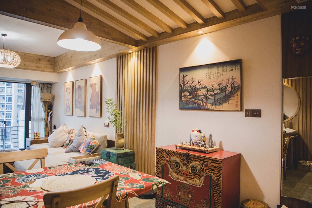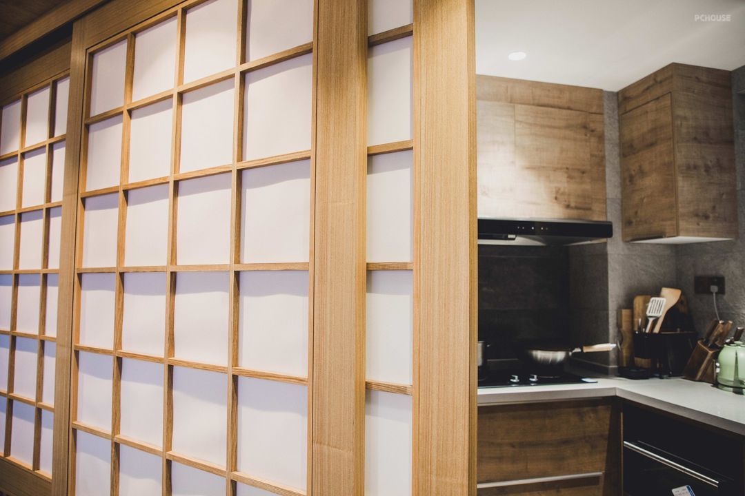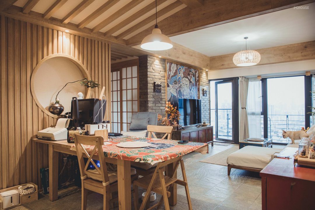 障子门风格代入感极强,也是东方美学不可缺少的元素,三扇障子门降原本不规则的空间切分整齐,让客餐厅空间方正。