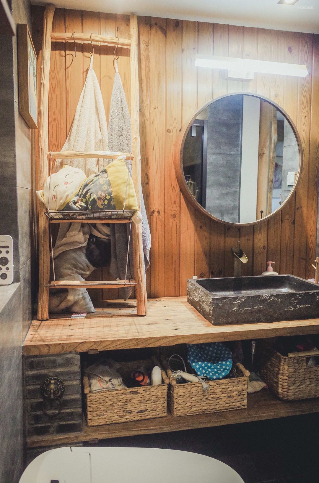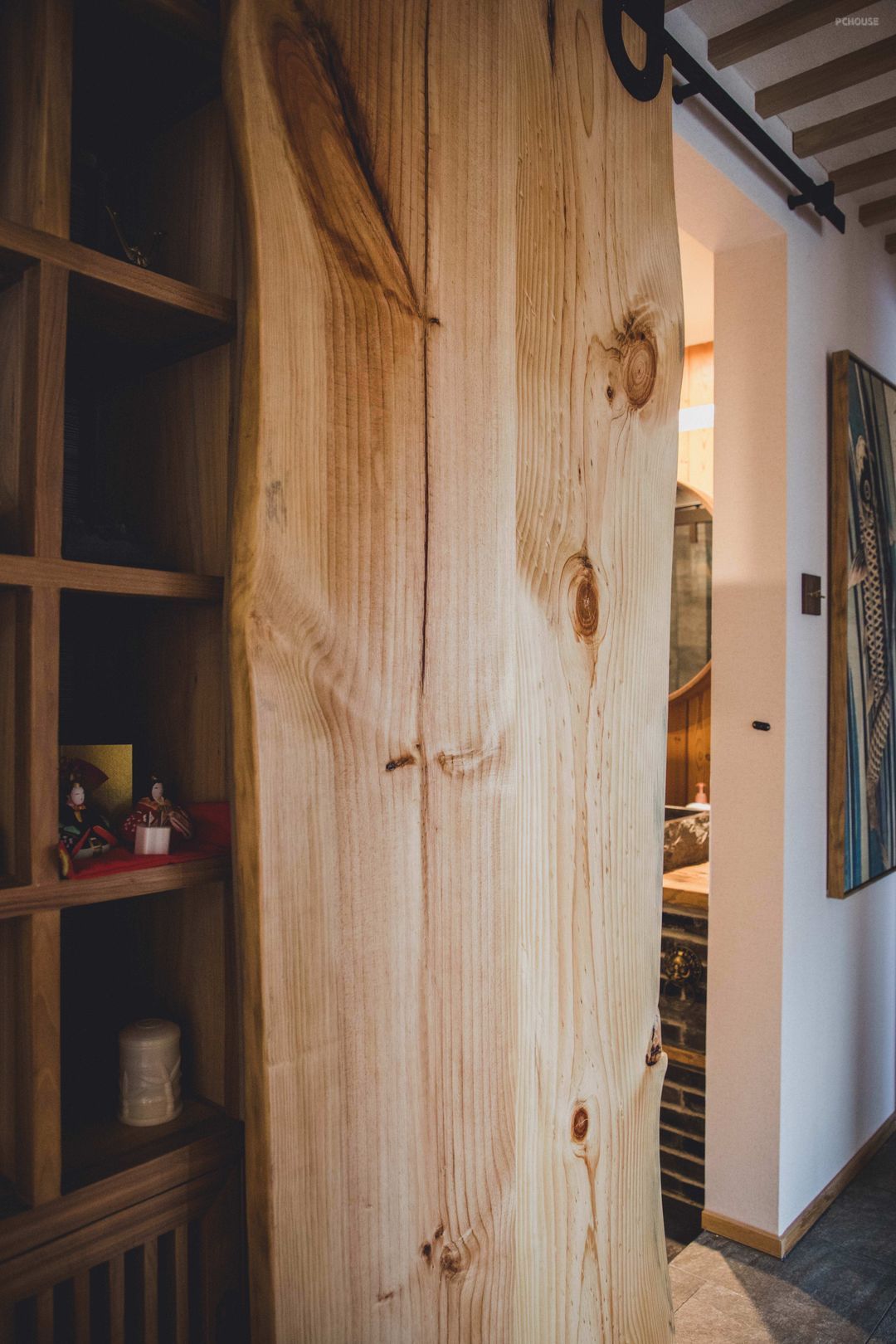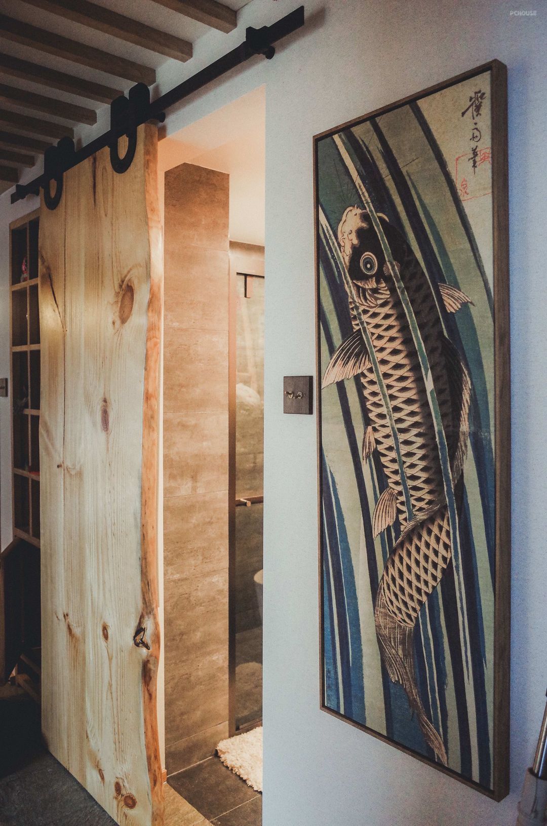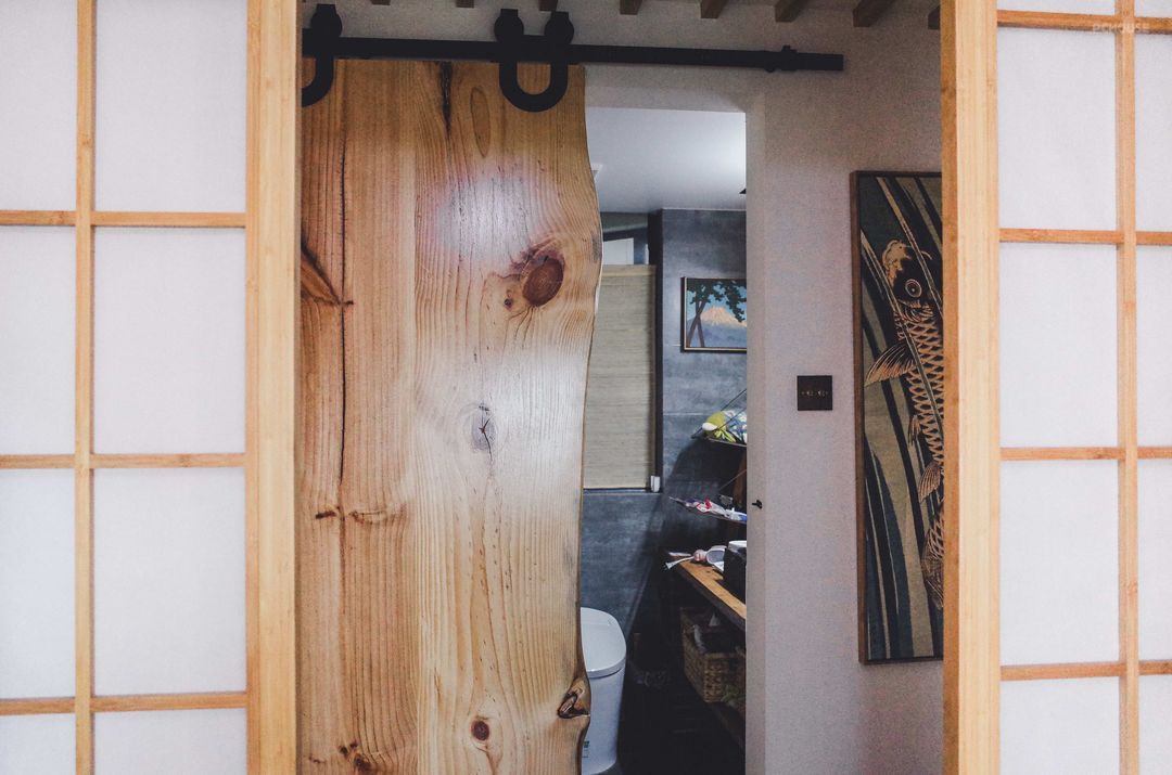 厕所谷仓门,平价又特别,满足审美需求的同时又不失隐秘性,原木色与整个空间完美契合,起到了很好的装饰作用。