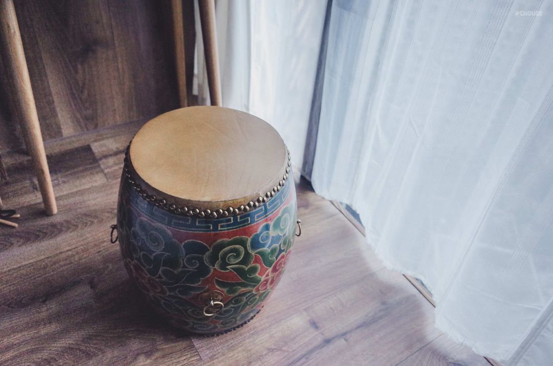 次卧旁桌面上的摆件,也从另一个角度昭示了复古文化的魅力,这些看起来极为质朴克制的物件往往都源自复杂的手工艺。