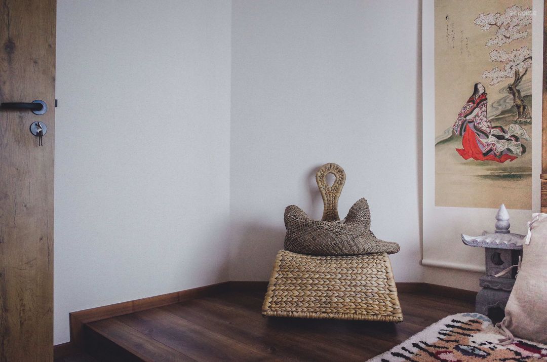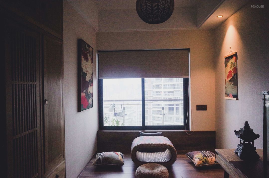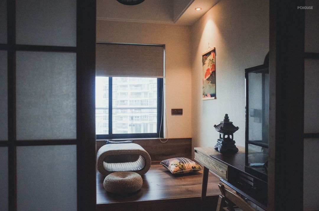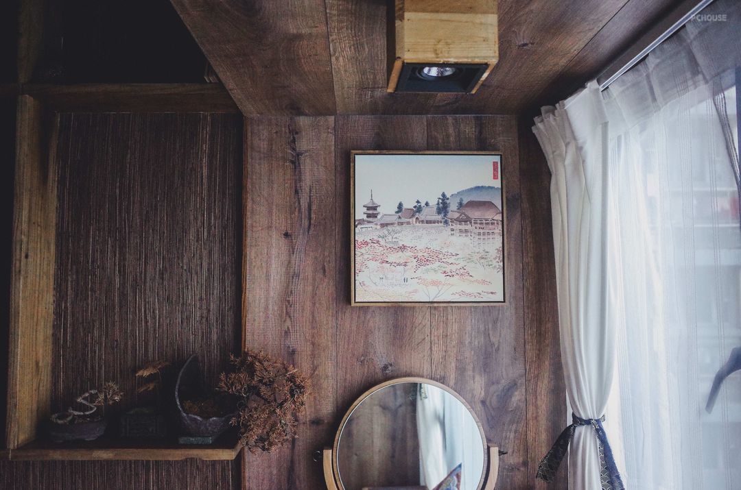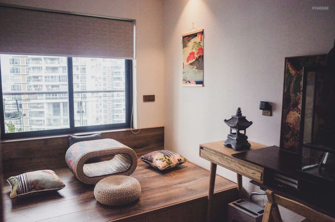 卧室传递出摆脱尘世的束缚,获得散心避世的栖居心境,房间充满艺术的影子,艺术的创作因子来源于传统日式复古文化,而日式文化中的精巧与故事性,正是设计师力图在设计中展现出来的另一层构思。
