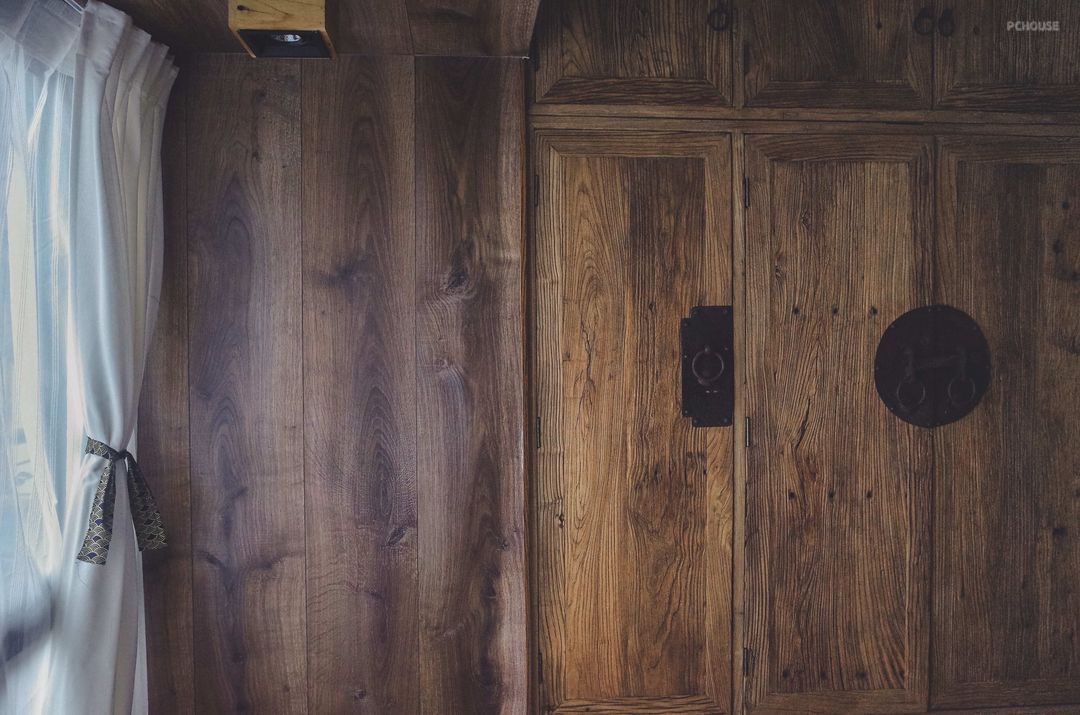 老榆木有岁月洗礼的痕迹,形成朴素的自然风格,纹理通达清晰、弦面花纹美丽,给空间营造出一种古雅典韵的格调氛围。