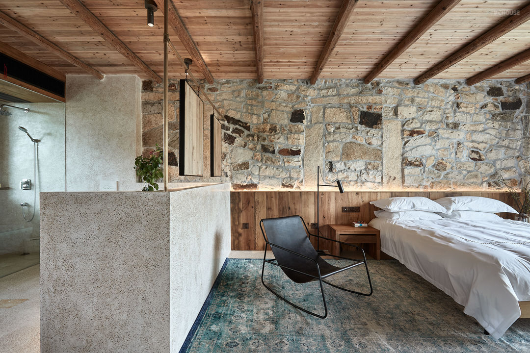 前言: 温岭是一个沿海小镇,辖58个行政村,其中纯渔业村54个。当地的建设风貌上,石墙、石屋、石路高低错落有致,色彩协调一致。石塘建筑,傍山临海,渔港景致,一览无遗。我们通过了解该地区的目标旅客群体的需求,确定了要做一个舒适的现代化的临海小渔村民宿的设计思路。在实际设计过程中,我们很大程度上保留了该建筑群的外立面,主材使用上多选用产自当地的材料,尽可能使用天然材料。考虑到该案子的实际功能是民宿,我们在空间的处理上尽量达到开阔的效果,让所有进来这个空间的人能够感受到与自然紧密的连接,暂时忘记大都市的繁杂。