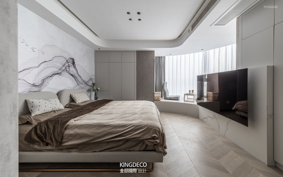 卧室风格延续客厅的现代极简风,传达东方秩序美学。低调柔和的配色,减少过多的室内包装设计让空间打造更加舒适简洁的卧室环境,色调以灰色为主,放松身体每一处神经,时间在这里变得缓慢,给予主人适合独处思考的私密空间。专注于此刻的宁静,花点时间与自己对话,为她带来更多的领悟与期许。