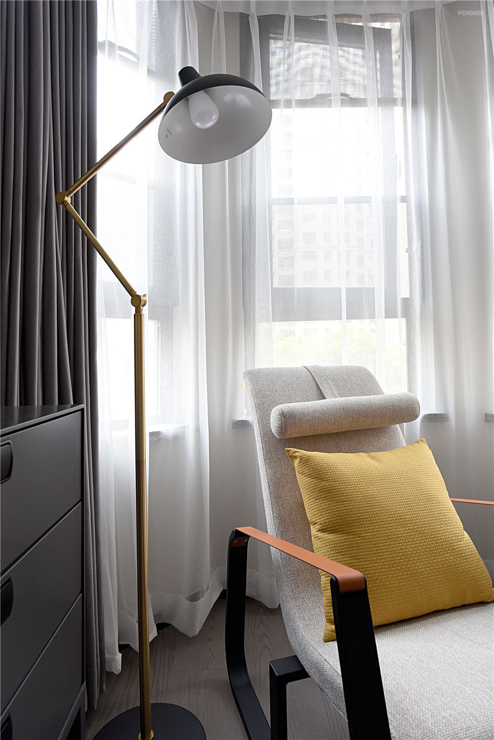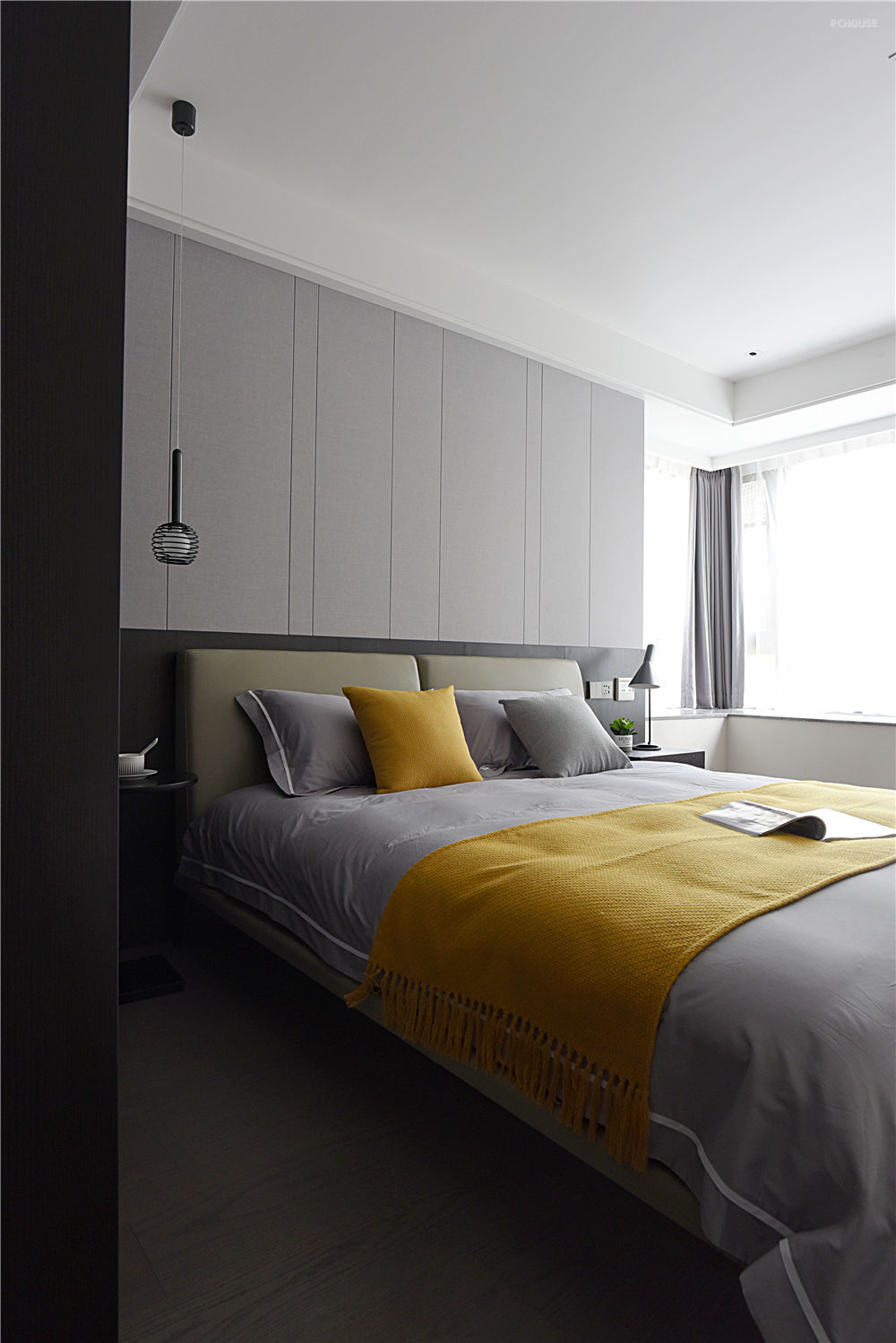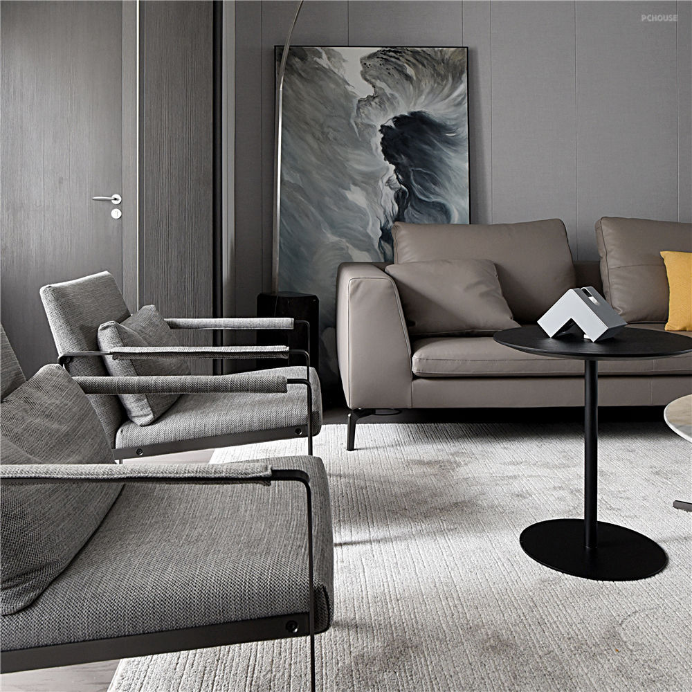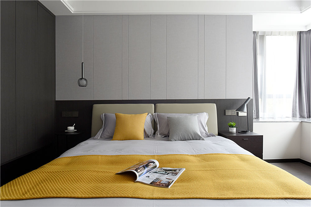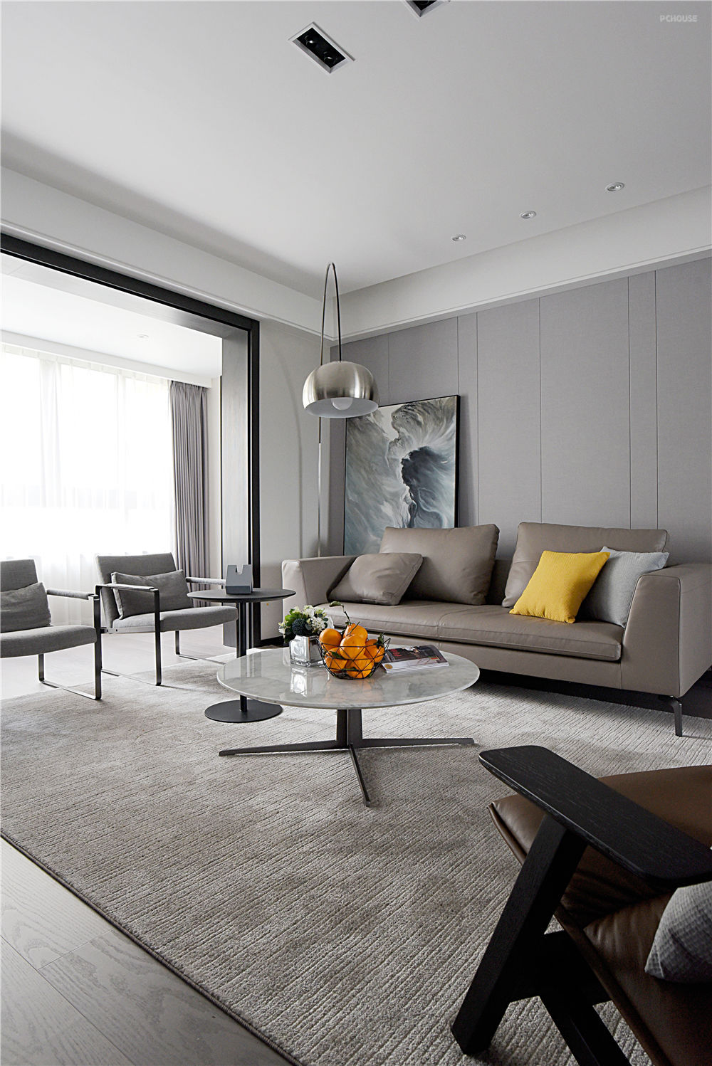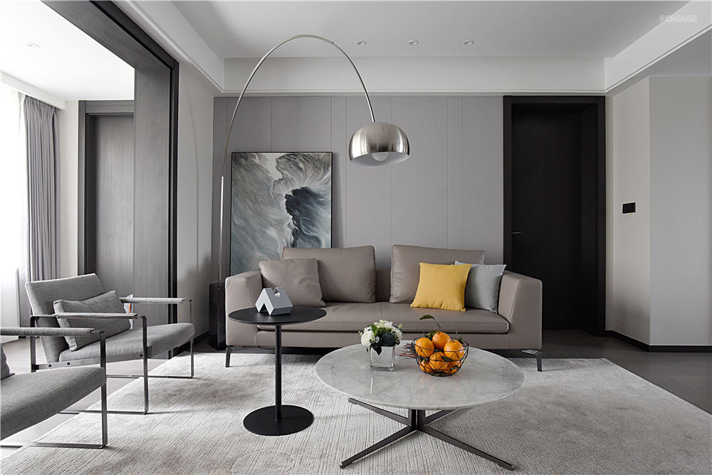 一个人内心所饱含的温度以及释放出的情感,往往可以用色彩进行诠释。以黑白灰为主色调的客厅,横添几笔暖色,使空间的沉稳和恬淡在不经意间完美融
