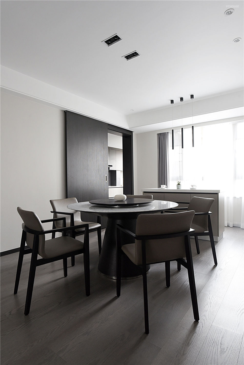 餐厅空间增加了一个休闲的中岛台,应与客厅、餐厅的空间氛围、色彩与材质皆能相互搭配,创造出最佳空间。