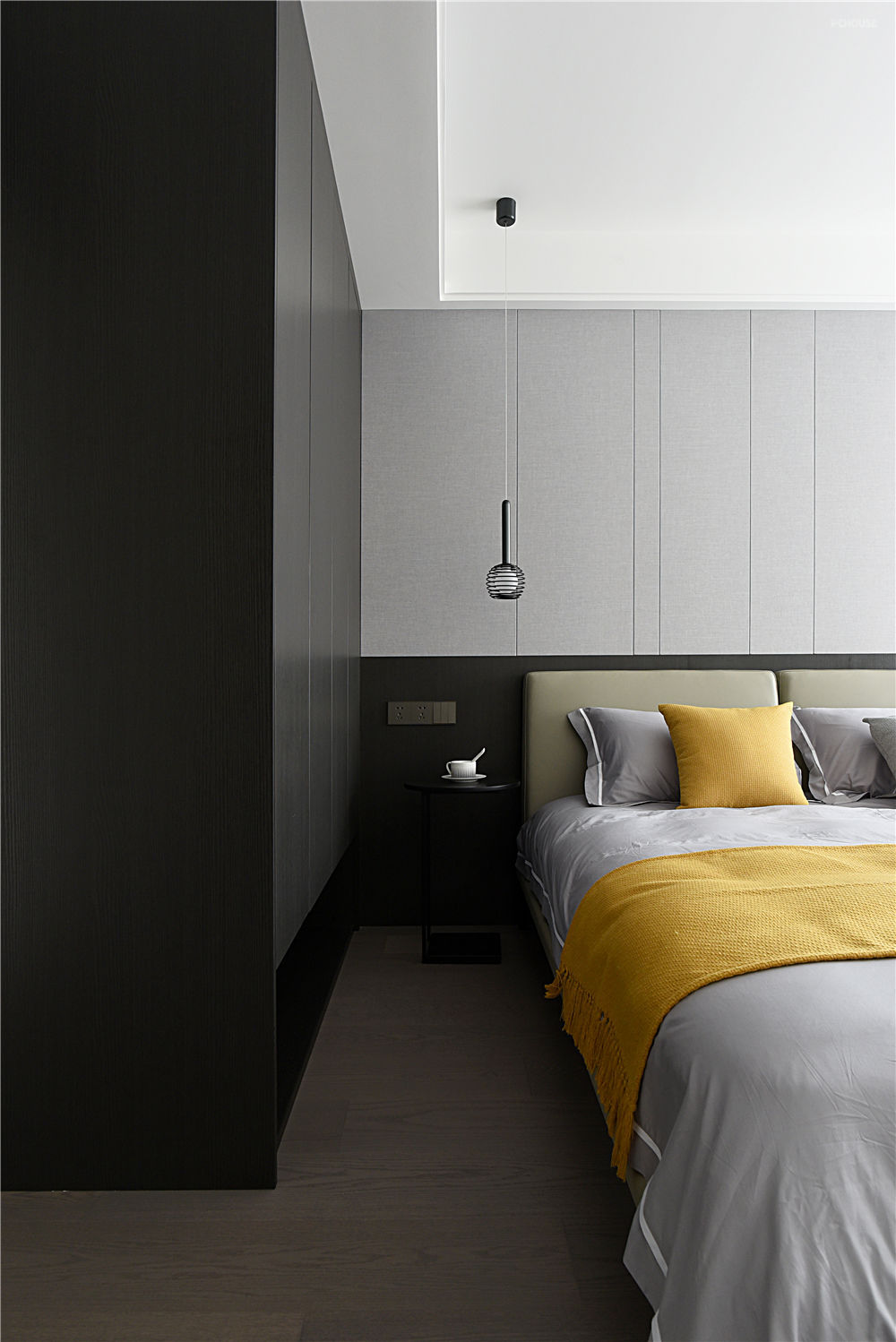 除了满足正常的生活功能外,设计师希望可以为屋主设计一个舒适而富有层次的空间,让生活充满美学。全屋整体以深灰色系为主,同时以灯光作为辅助为室内增加层次变化和起到营造氛围的作用。