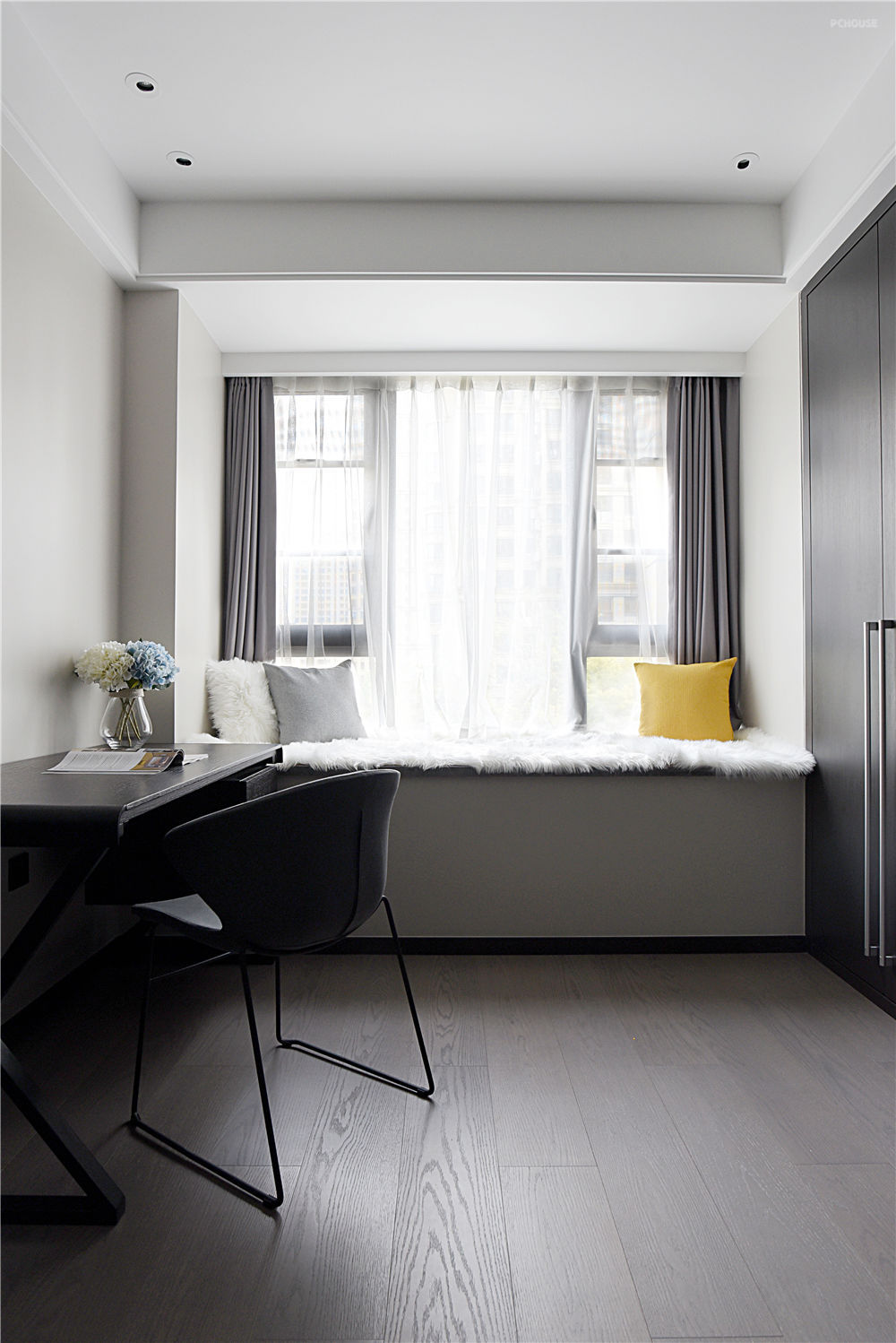 定义了空间的一隅 平时及可以是独立书房也可以是客房影视厅等的功能
