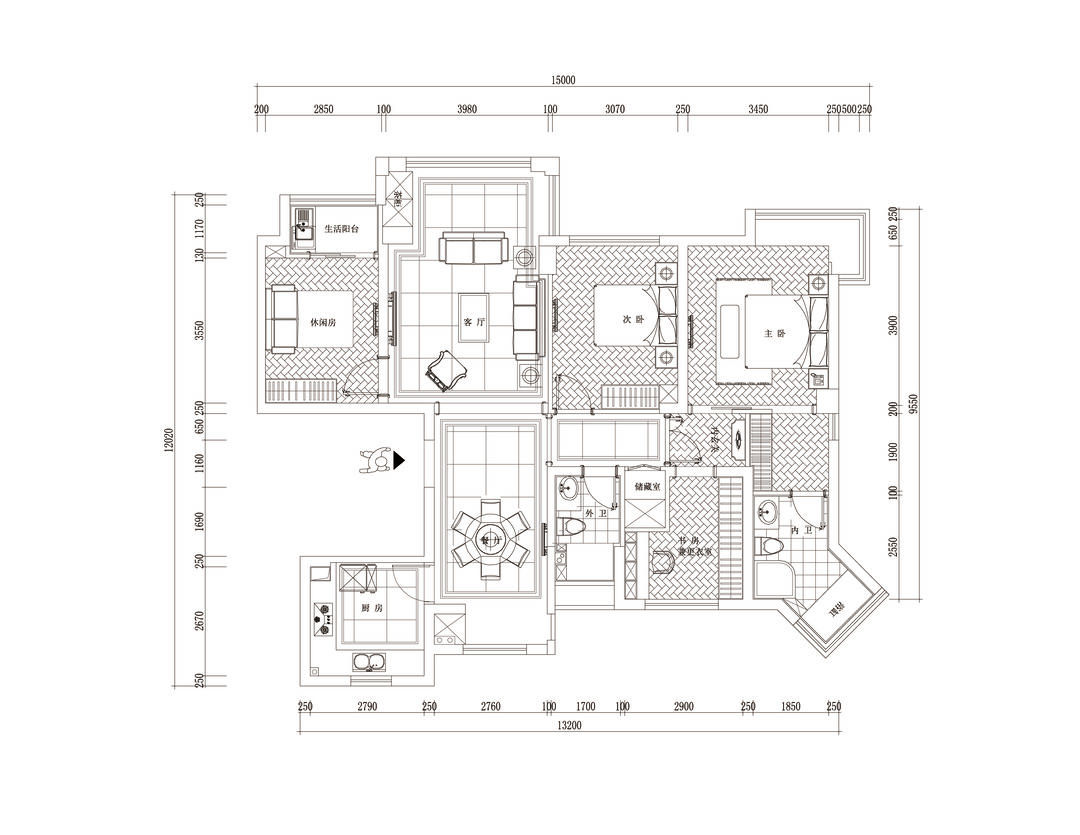 退休夫妻购置的新房,二老自己住,只有一个出嫁了的女儿偶尔带外孙来玩。对房间个数要求不高,要求宽敞明亮,简洁大方。