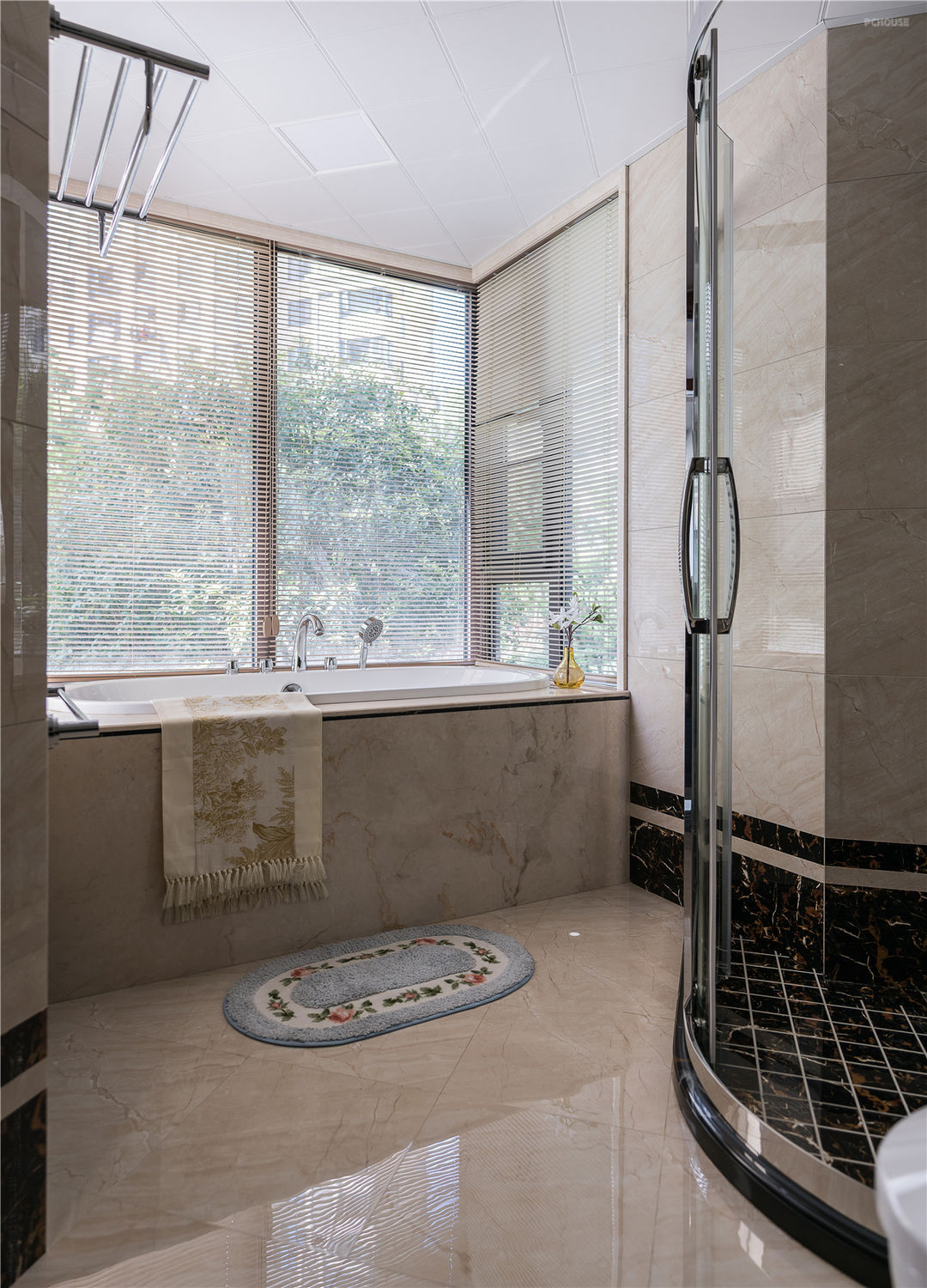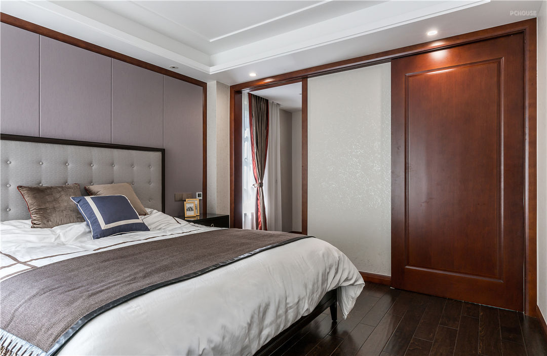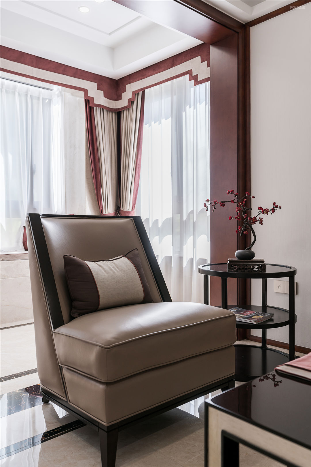 整体设计采用现代新中式的风格,没有一些冗杂的装饰设计,注重于格局规划和功能分配,以胡桃木和艺术漆作为饰面材料,减少大理石的冰冷感,以米色调为基准,用软装及画增加空间的活力,带动出禅意中含蓄的雅致。