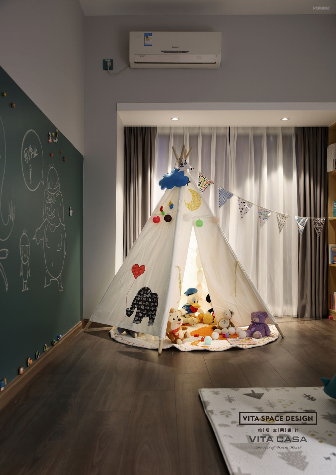 装修那年先生工作原因要外派国外两年,M小姐便辞掉了工作,家里还有一双儿女。她说,忙了这么多年终于可以安定下来,未来的两年可以好好陪一下孩子们,可以学习烤蛋糕、在阳台种满一排花草、陪孩子一起读寓言,静心回答他们那好像永远都问不完的“为什么”。