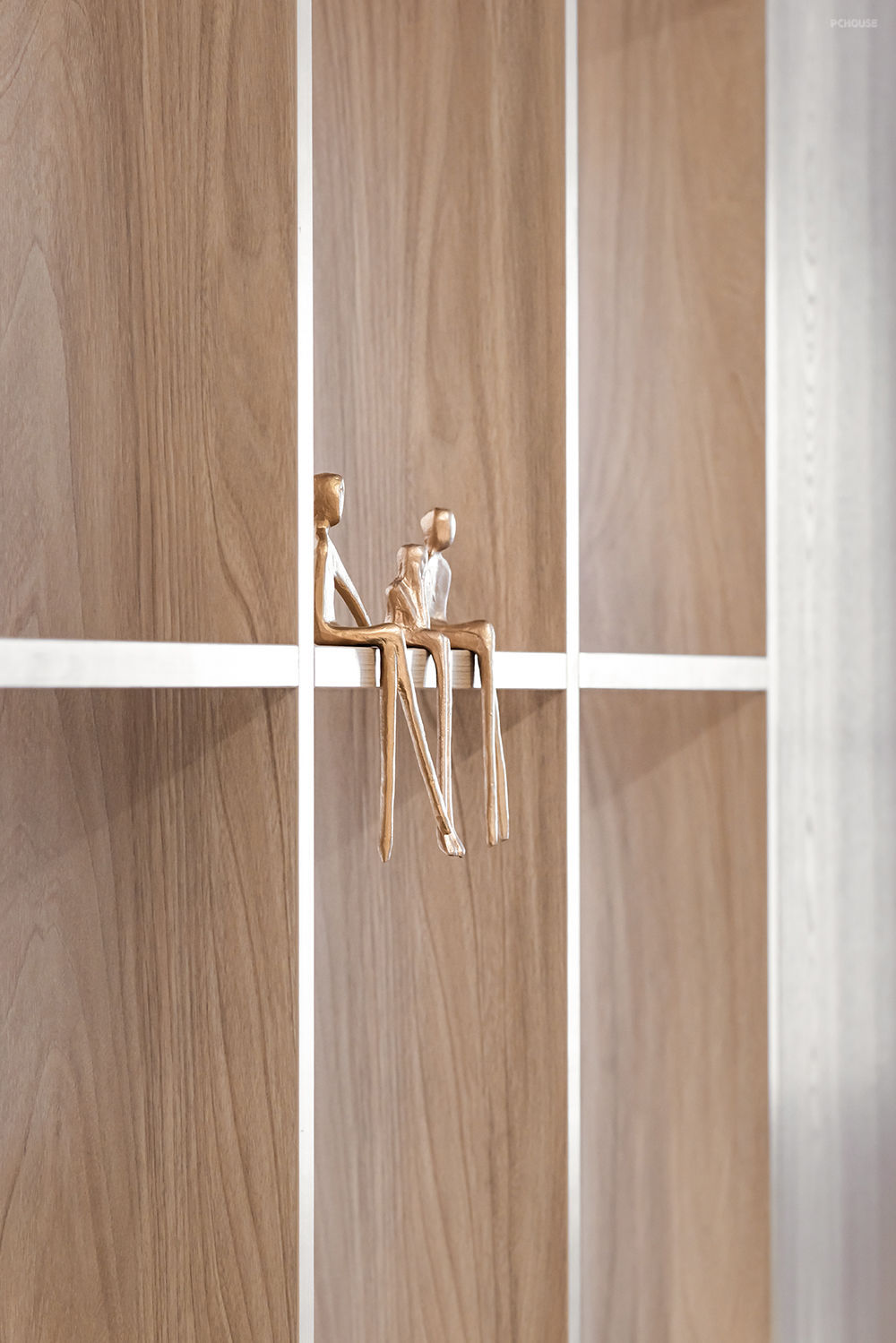 所以在入门玄关的位置,我们加入了单扇的长虹玻璃。既能满足单向采光进入玄关,透光不投影的隔断也具备遮挡性。营造光影的效果从开门起,就成为左邻右舍羡慕嫉妒的房子,是空间最恰当的语言。
