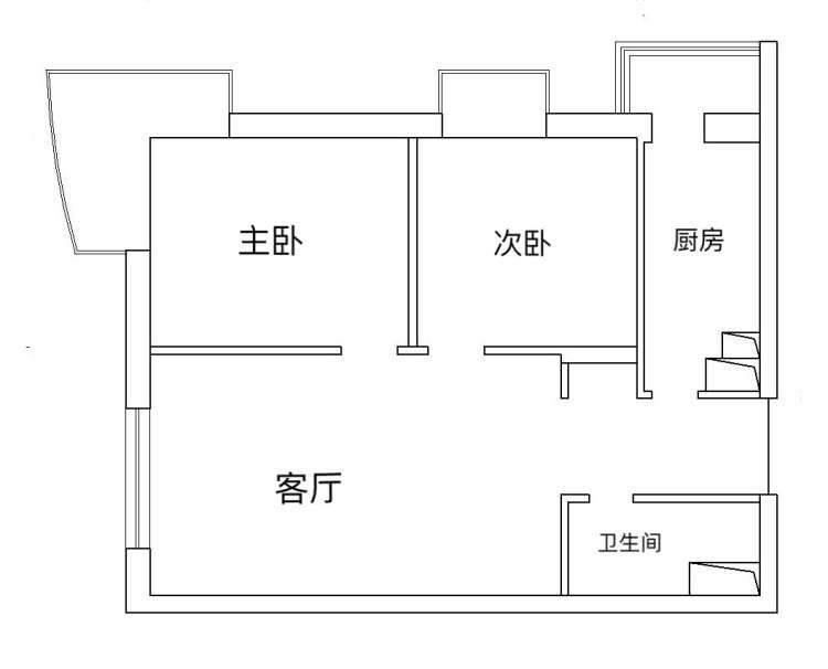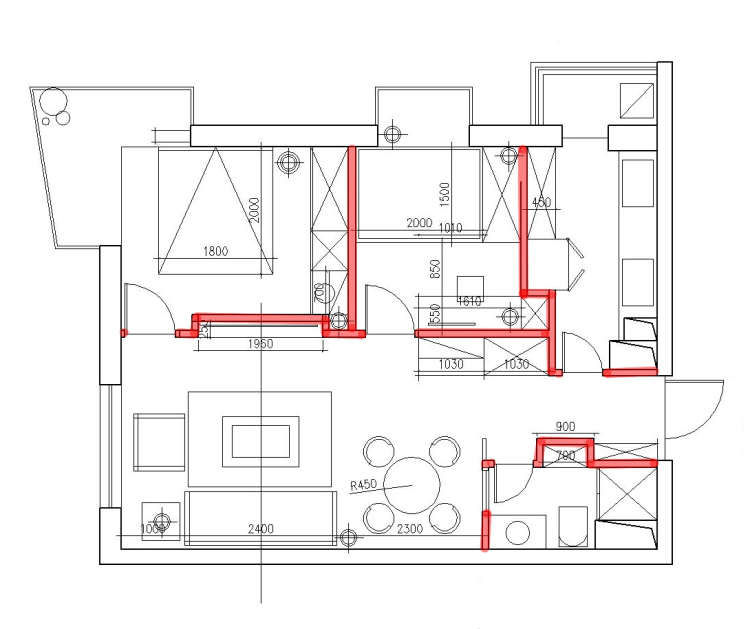 改造前户型图原户型有几个弊端比较明显。一、厨房太窄,不能放下冰箱,所以冰箱要放房子外面,这也便占用了原来就不大的餐厅。二、主卧室的门安排在了客厅正中间,当主卧室开着门的时候,走向客厅便一览无遗,很没有私密性。三、卫生间虽然有基本的卫浴功能,但是少了储物柜,卫生间的杂物可不少。我便围绕这三个不足之处进行空间布局改造。