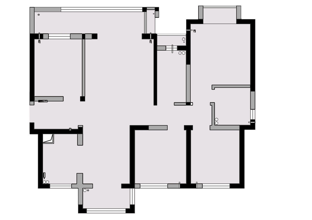 这个房子是非常标准和常见的一个户型,南北通透,4房2厅。整个空间分割的比较散,而且每个空间都很局促,业主提出诉求:喜欢烘培,需要大大的厨房,将来两个孩子都会在这边读书,需要有独立学习的空间,同时还明确主卫不需要,增加储物功能。