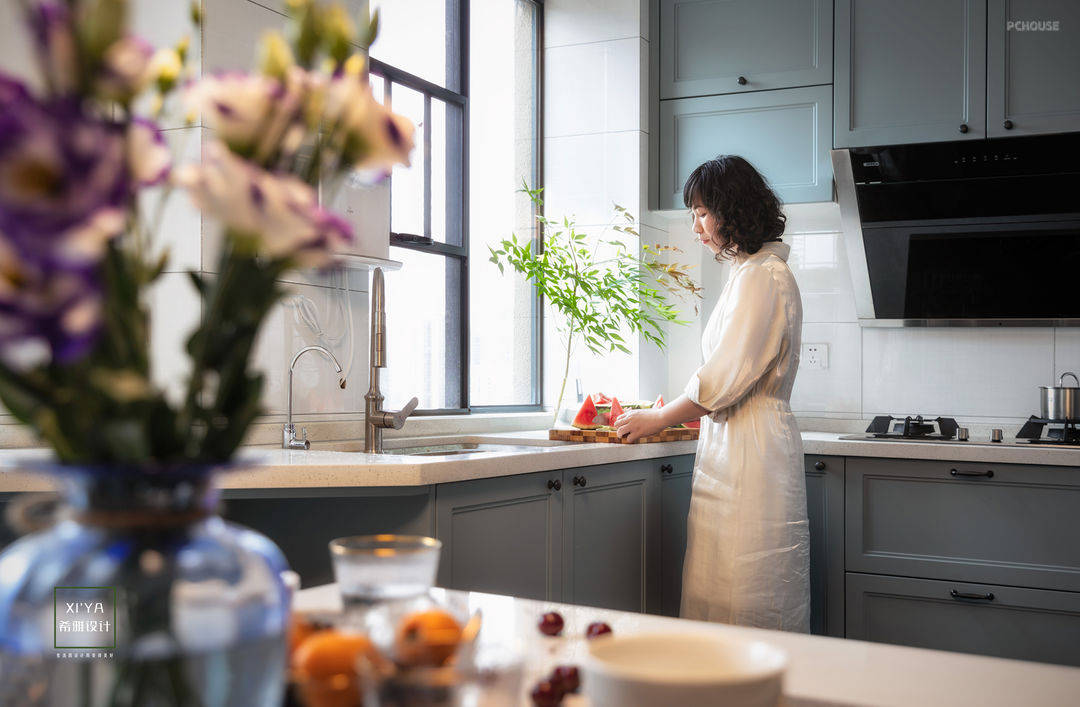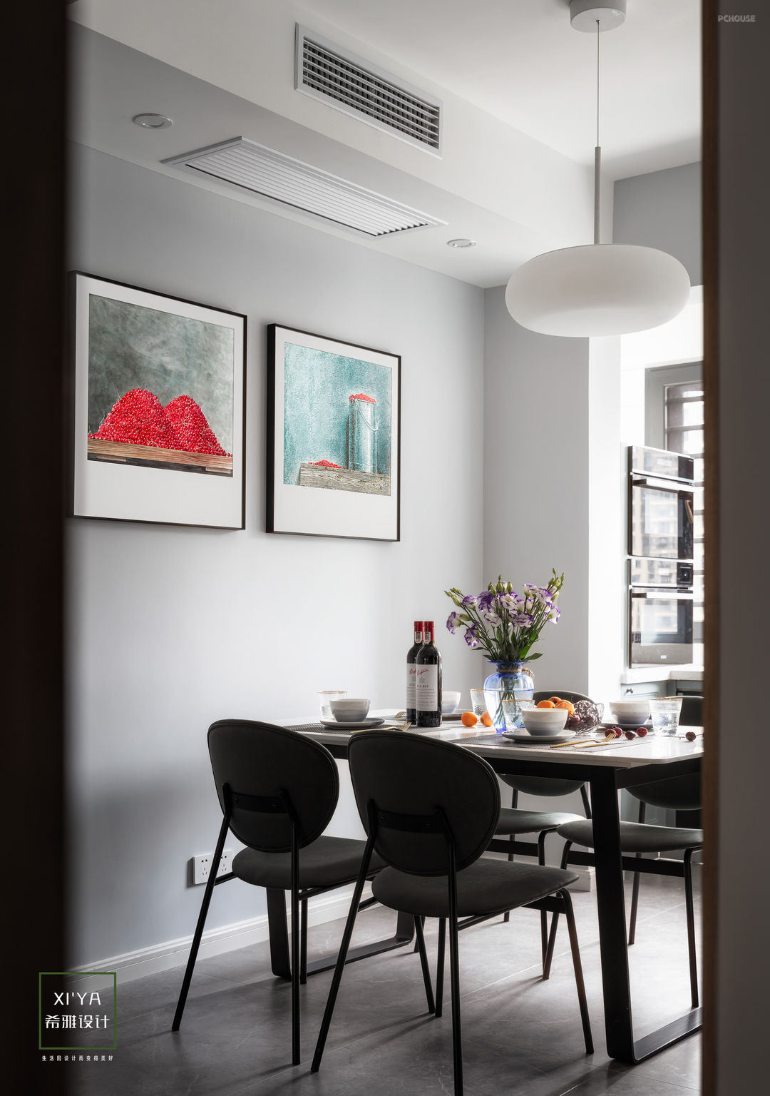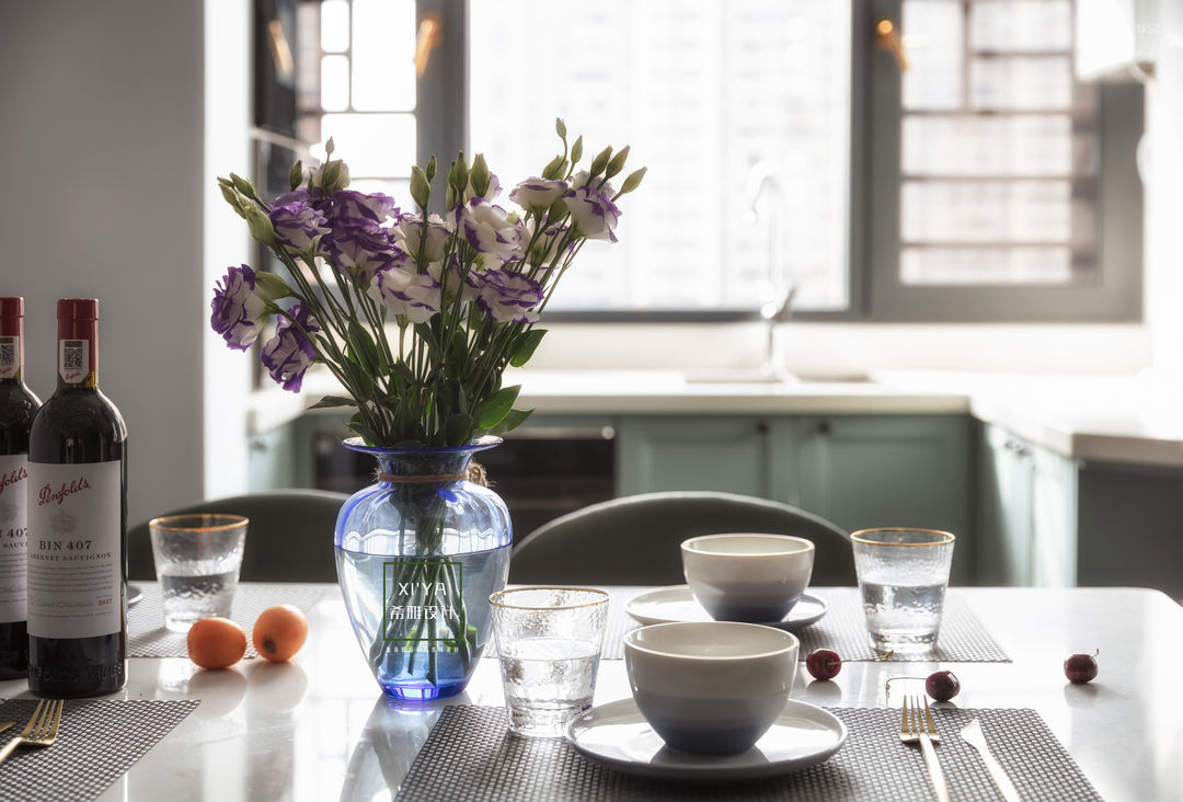 餐桌区域一家人在熟悉的空气里围坐,邂逅生活的美好。开放式厨房进一步的延伸了原本这个封闭的空间,尽可能的满足功能最大化的同时依然具有宽敞感。