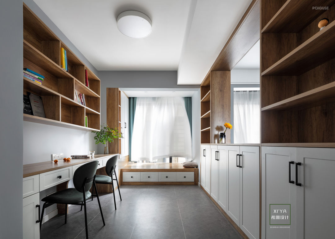 这间多功能房可以兼具不同使用场景,可以是书房,可以是阅读室,来了客人还可以把榻榻米当做床,作为卧室使用,一室多用。