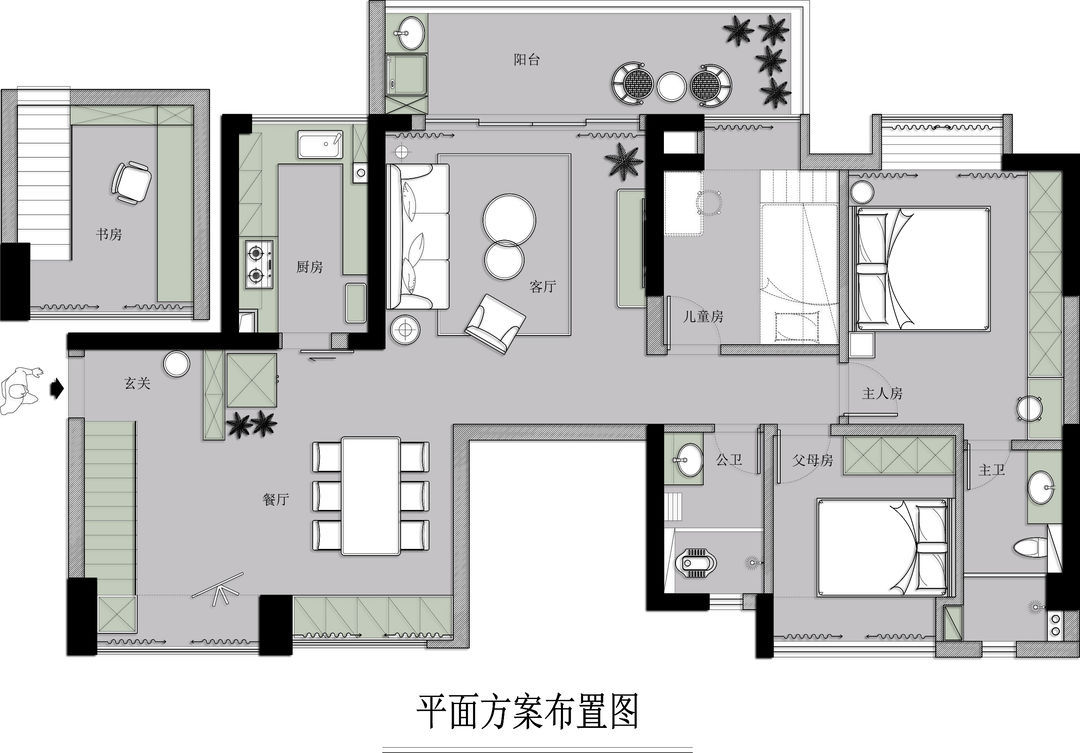 本案空间为了满足客户的需求,优化空间格局,让动线变得更加舒适流畅: