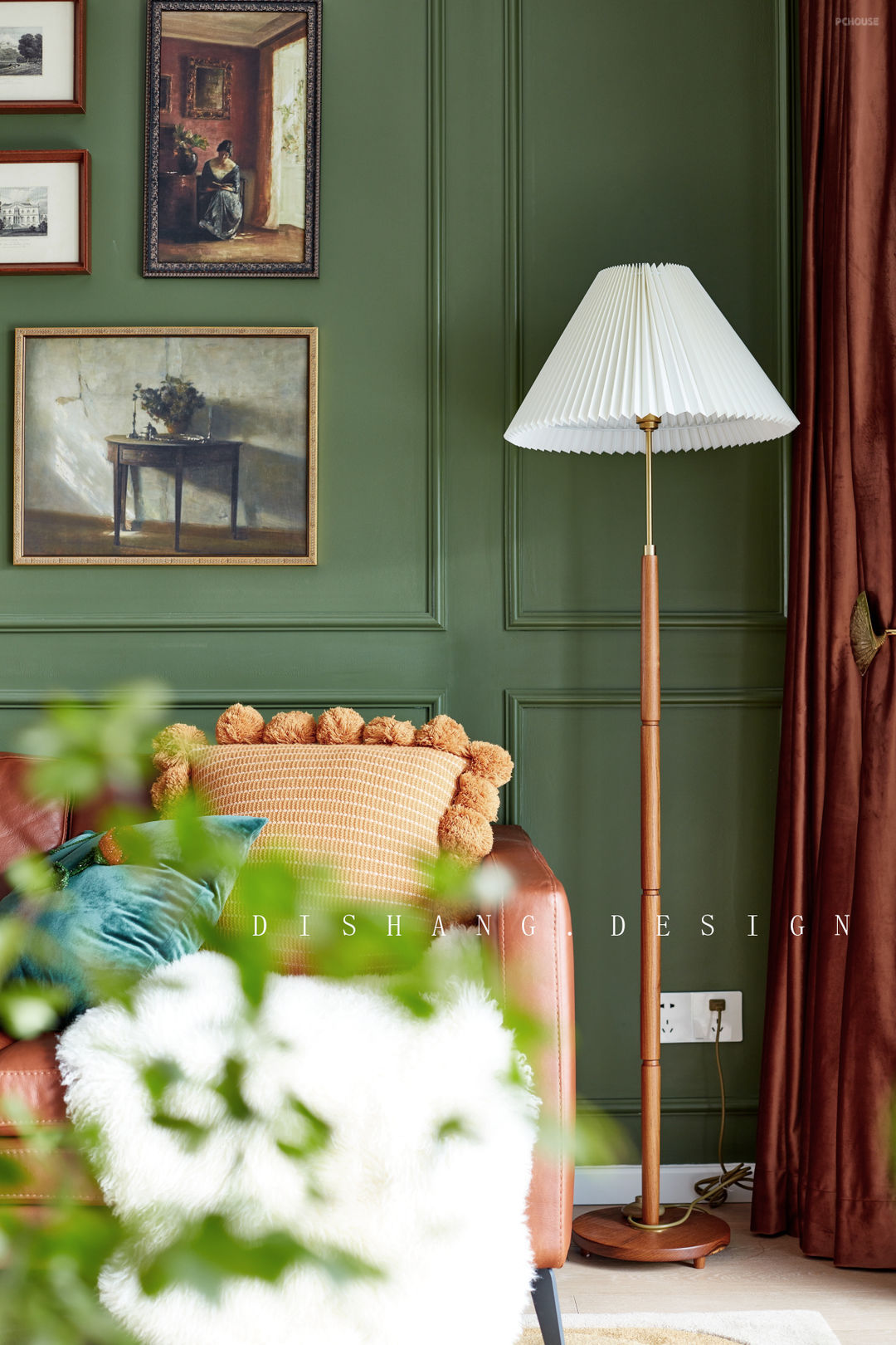 饱和度高却又不失丰富感情的色彩总能让人感受到浓郁的温情。客厅用色干净简约,以复古绿色打底,饱满的棕色、黄色、橙色为撞色,让空间避免单调沉闷,拼色的地毯也增添空间的层次感与艺术感。