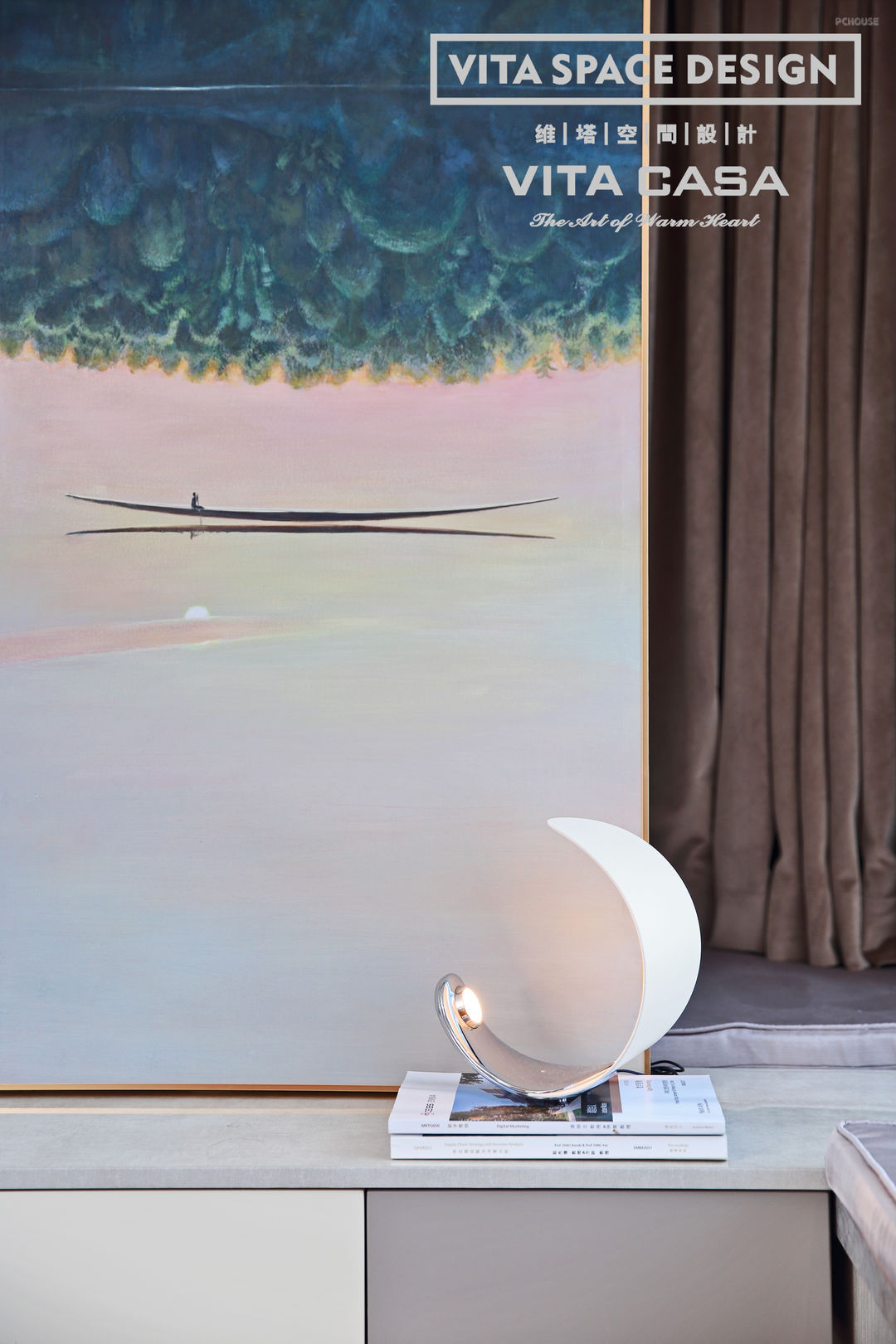 玄关处,壁挂装饰画与爱马仕装饰盒相映成辉,用空灵的纯净色彩,营造空间的雅致。